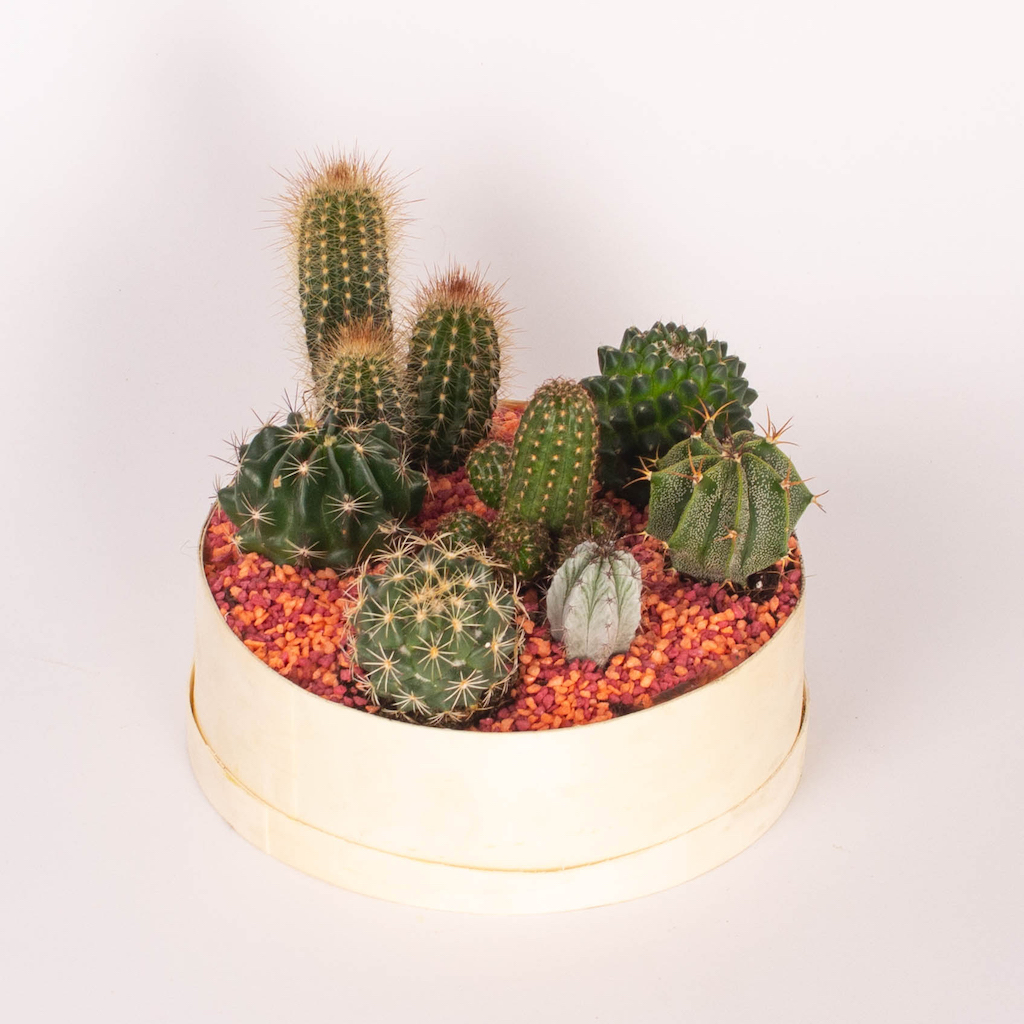 Usor de ingrijit si potrivite in orice decor, mini gradiniile aduc cu ele o nota de prospetime. Profita de micile placeri pe care ni le daruieste natura si decoreaza-ti biroul cu acest aranjament cu cactusi si muschi, o planta care va raspandi energie pozitiva si relaxare in jurul sau.
