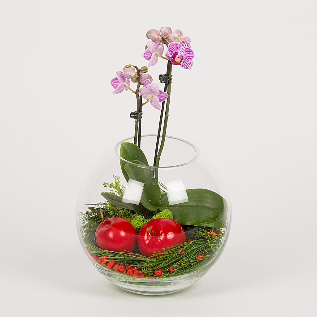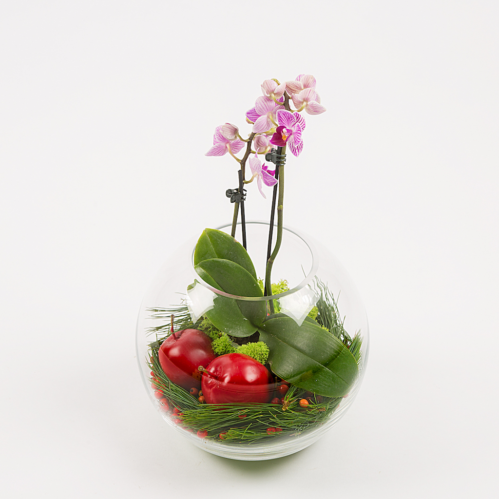 Craciunul il petrecem alaturi de familie si prieteni. Alaturi de oamenii pe care ii pretuim si carora le facem cadouri din suflet. Iar terariile si aranjamentele cu plante sunt cadourile care transmit gandurile noastre bune. Inspirati de magia sarbatorilor de iarna am realizat acest terariu cu orhidee si mere cerate. Cu un design deosebit si usor de intretinut, cu siguranta va infrumuseta orice casa. Si pentru ca sarbatorile de iarna au parfum de scortisoara si portocale, am ascuns printe aceste plante delicate o surpriza parfumata care ne va aduce aminte de copilarie.
