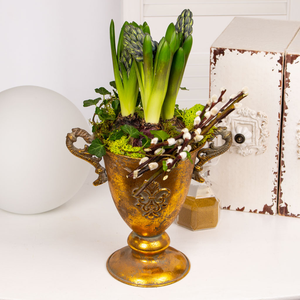 Primavara ne bucura privirea cu cele mai frumoase flori si cele mai expresive culori. Am strans in aranjament cu bulbi de zambila cele mai bune ganduri si cele mai sincere urari. Daruieste-l mai departe celor pe care ii indragesti si spune-le „O primavara frumoasa!” in cel mai frumos mod, prin flori pline de viata. Potrivit persoanelor deschise, comunicative si care apreciaza iesirile in natura, acest aranjament cu flori de sezon este cadoul potrivit pentru a le face sa zambeasca din plin.