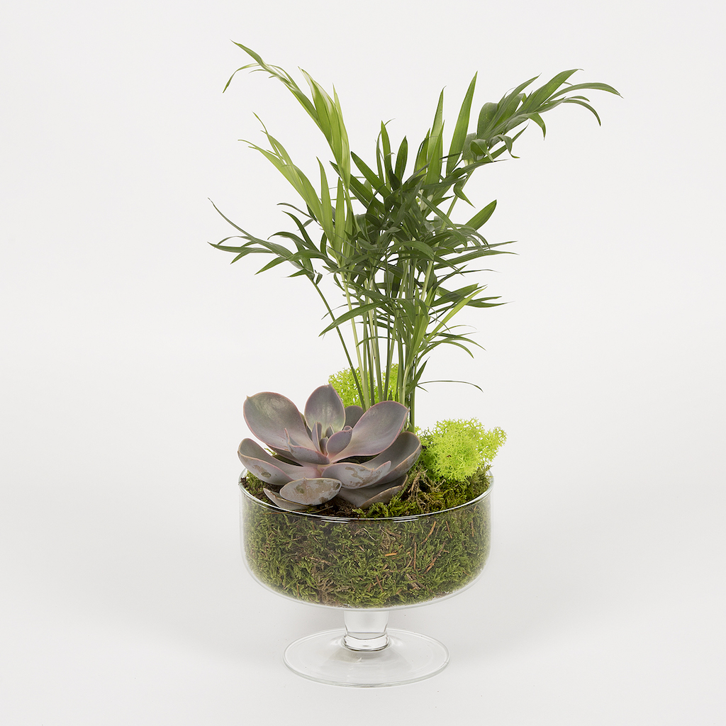 Pentru momentele in care esti indragostit si simti ca plutesti, acest aranjament cu plante echeveria si planta verde este cadoul perfect pentru a-i marturisi dragostea persoanei iubite. Daruieste-i un terariu care sa-i aduca un strop de bucurie de fiecare data cand il priveste.