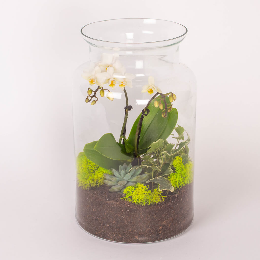 Usor de ingrijit si potrivite in orice decor, terariile aduc cu ele o nota de prospetime. Profita de micile placeri pe care ni le daruieste natura si decoreaza-ti biroul cu acest aranjament cu plante si muschi, o planta care va raspandi energie pozitiva si relaxare in jurul sau.