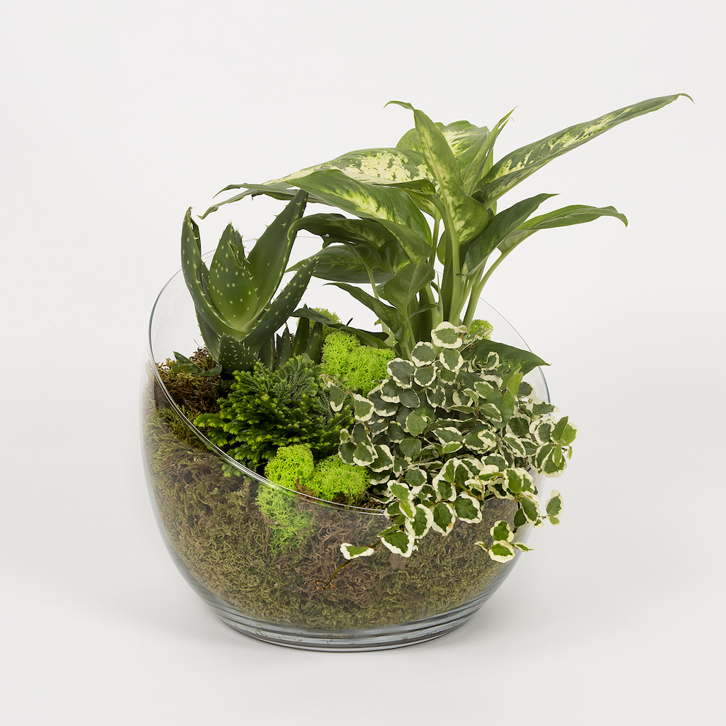 Pretuim tot ce are natura mai bun si mai frumos de oferit, asadar am pregatit acest terariu special pentru tine sau cineva drag. Aranjamentele cu plante verzi si plante cu flori rezista mai mult si in plus, purifica aerul din casa sau biroul tau. Acest terariu este cadoul perfect pentru iubitorii de plante.