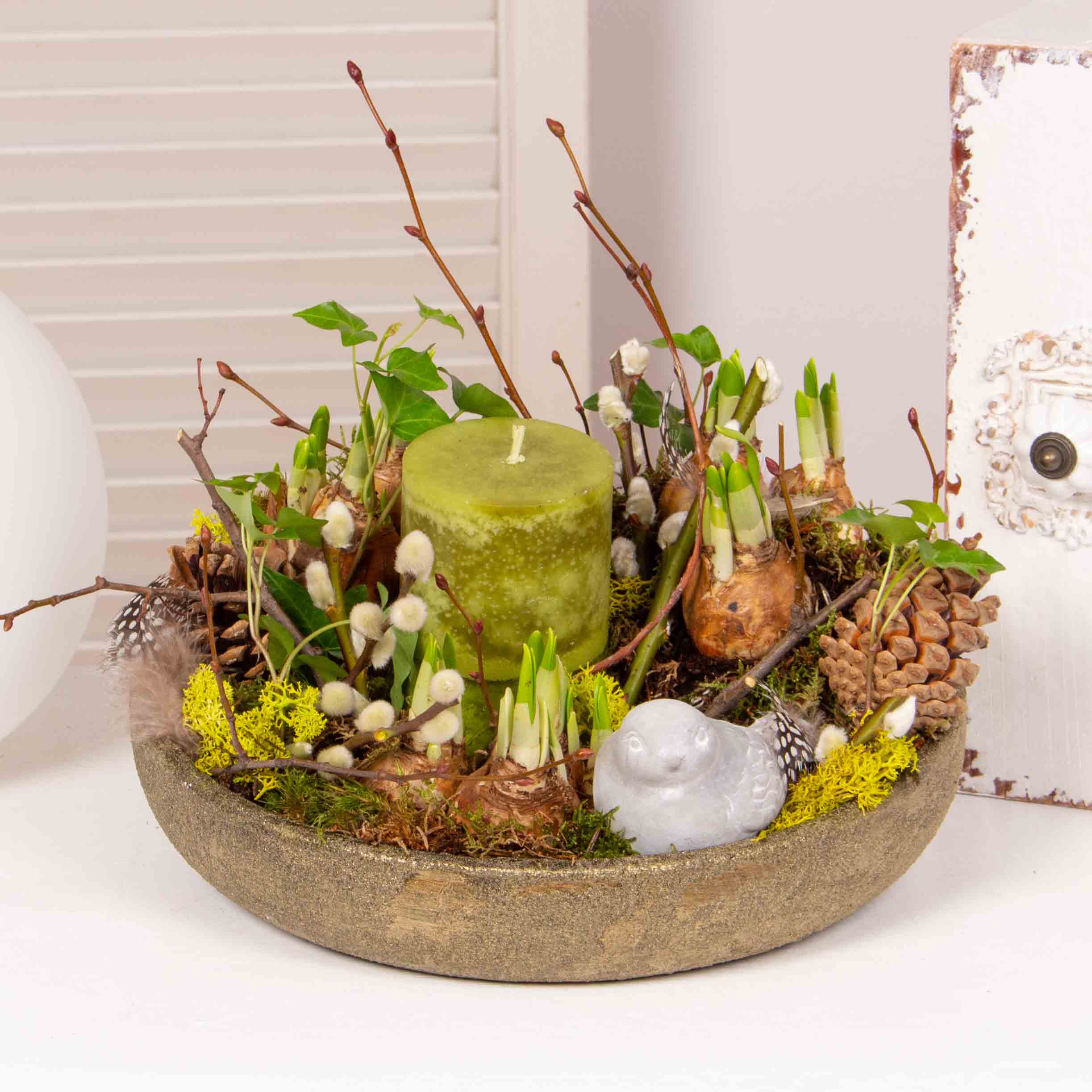 Florile sunt cel mai frumos cadou al naturii. Fie ca vrei sa-i faci o surpriza frumoasa mamei, surorii sau iubitei tale, acest aranjament cu bulbi de narcisa si alte decoratiuni este cea mai buna alegere. Adauga un mesaj din inima si vei reusi sa o faci sa se simta iubita si rasfatata.
