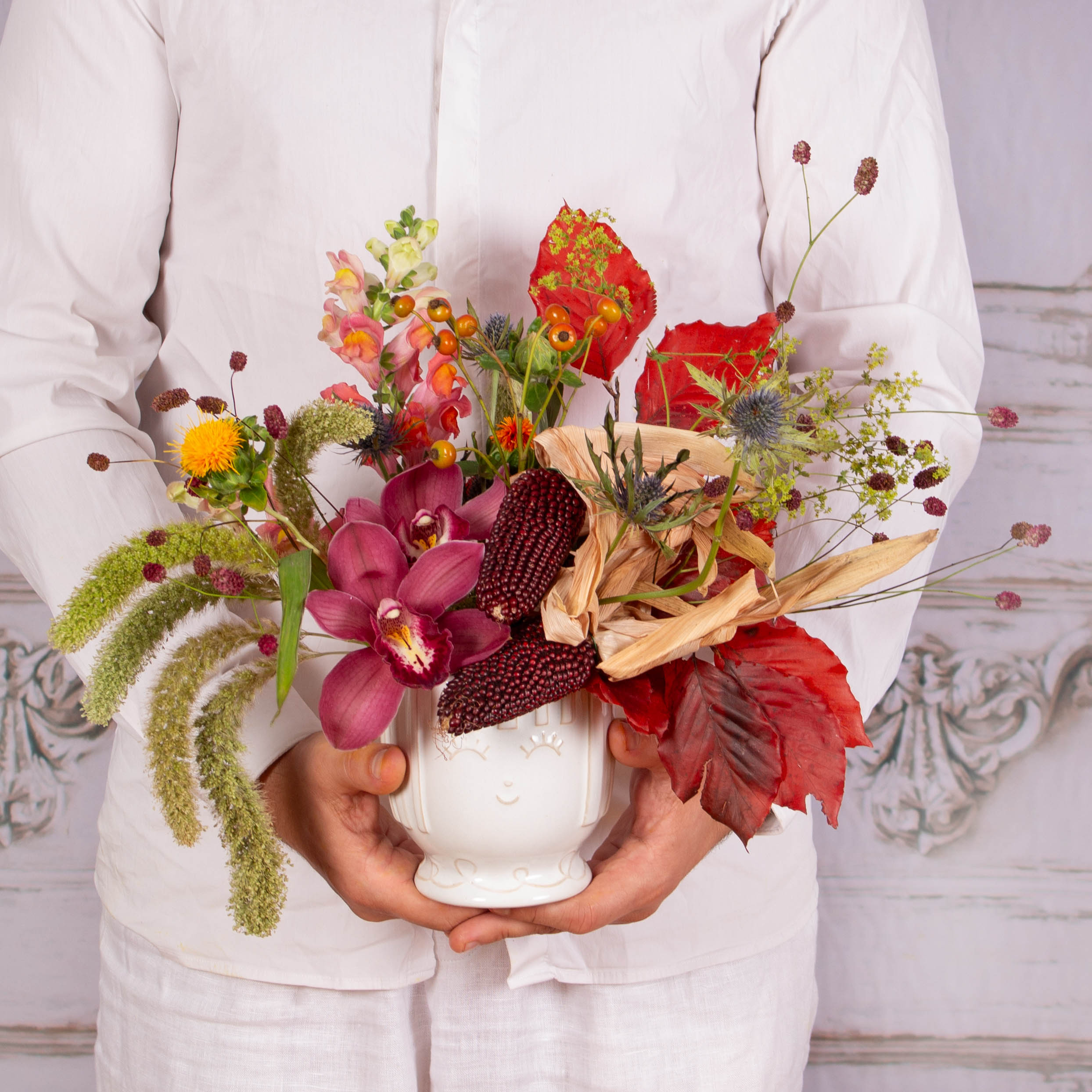 Acest aranjament intr-o in nuante vibrante este alegerea ideala pentru a lasa o impresie de neuitat persoanei dragi.