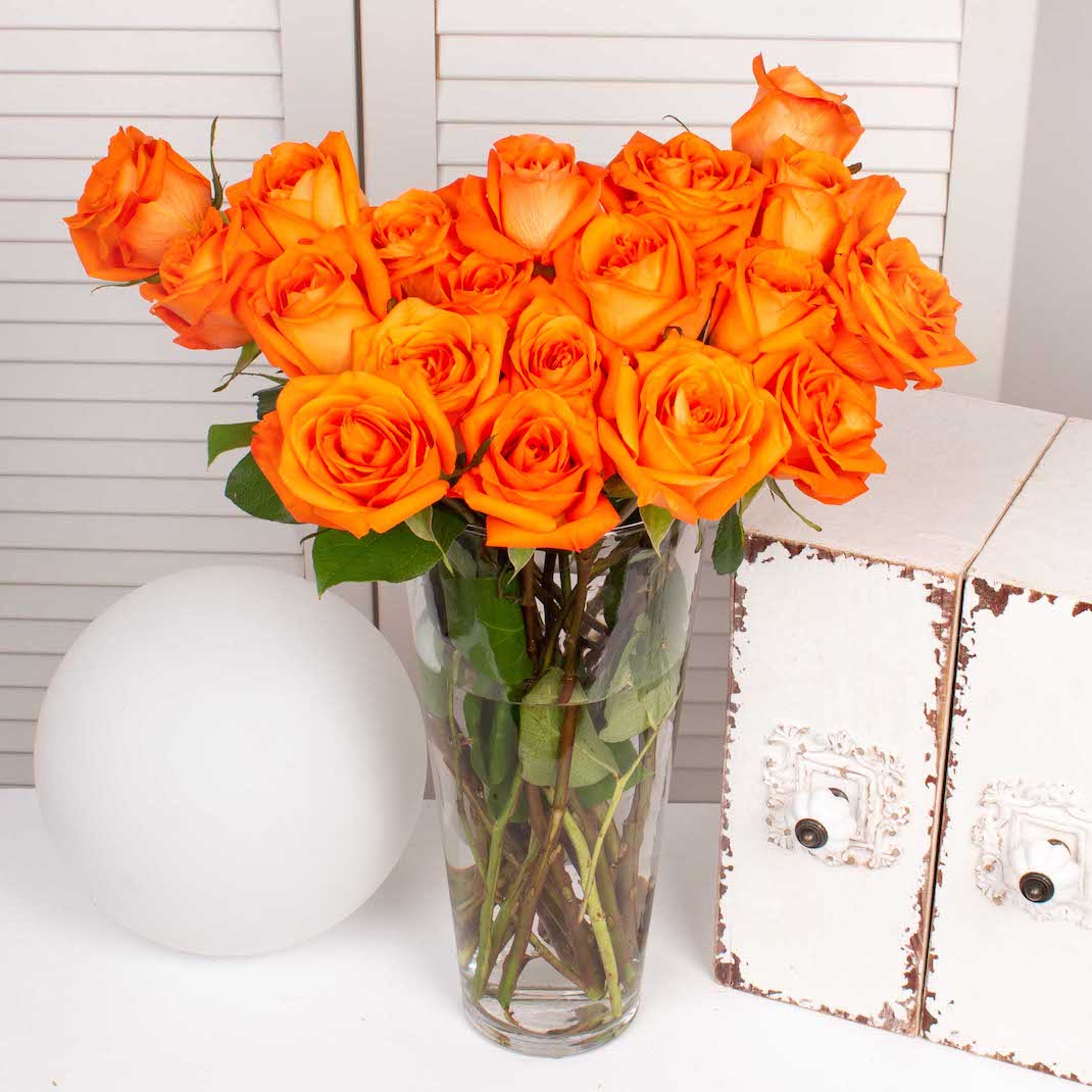 Din grija pentru mediu, ne dorim sa avem produse cat mai prietenoase cu acesta. Ce ne ofera florile e arta si terapie iar noi ar trebui sa ne asiguram ca respectam natura ce ni le-a daruit.Tocmai de aceea realizam aceste produse eco si ne-am luat angajamentul ca intreg magazinul Purple Flowers sa devina eco-friendly in cel mai scurt timp posibil. Din cauza faptului ca nu este biodegradabil si nici reciclabil, scopul nostru este de a elimina in viitor buretele floral din compozitiile produselor noastre. Acest aranjament cu trandafiri portocalii este alegerea perfecta pentru a face o surpriza unei persoane dragi.