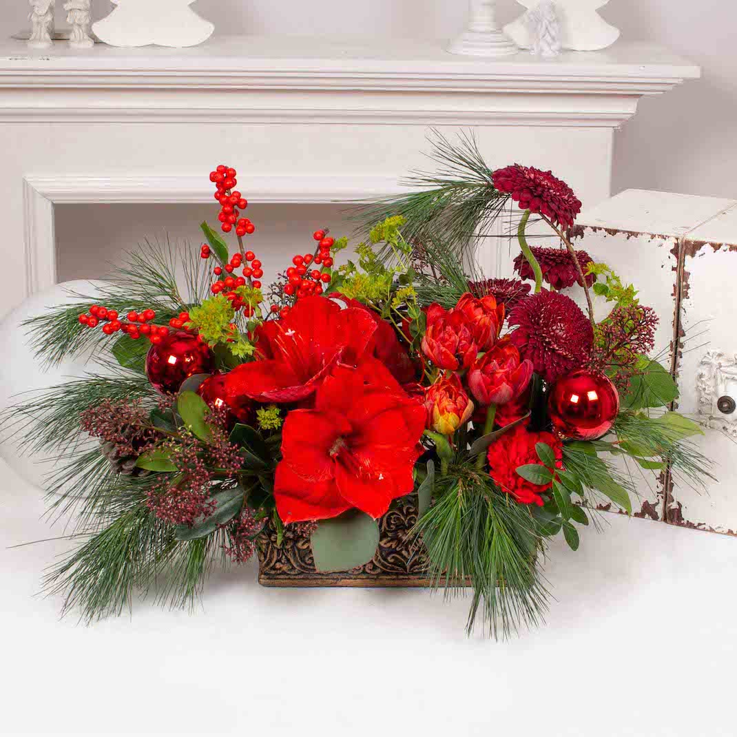Aranjament de Craciun cu amaryllis, gerbera si alte flori
