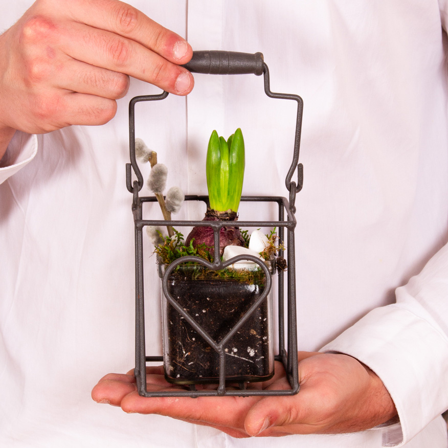 Pentru a va bucura cat mai mult de acest aranjament, adaugati putina apa pamantului din interior. Aranjamentul va fi amplasat doar in interior, ferit de razele directe ale soarelui si departe de aparatele de aer conditionat si calorifere. Temperatura recomandata pentru pastrarea florilor nu trebuie sa fie mai mare de 20 grade Celsius.