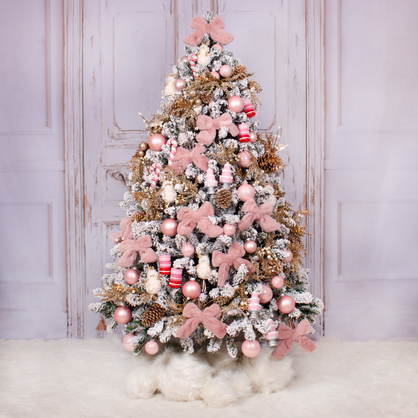 Brad artificial inzapezit cu decoratiunii roz