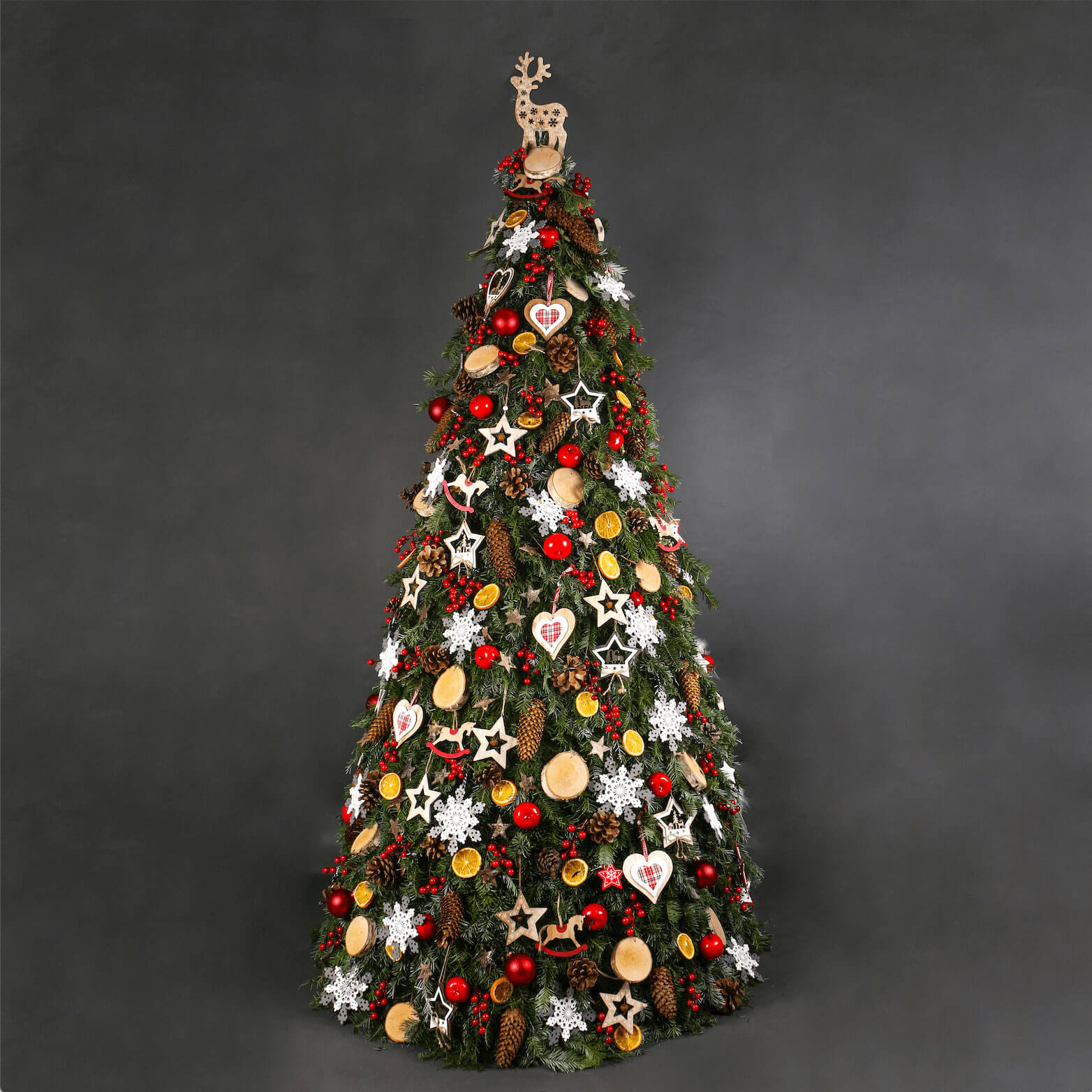 Brad Craciun pe structura metalica cu decoratiuni si conuri contine brad natural.