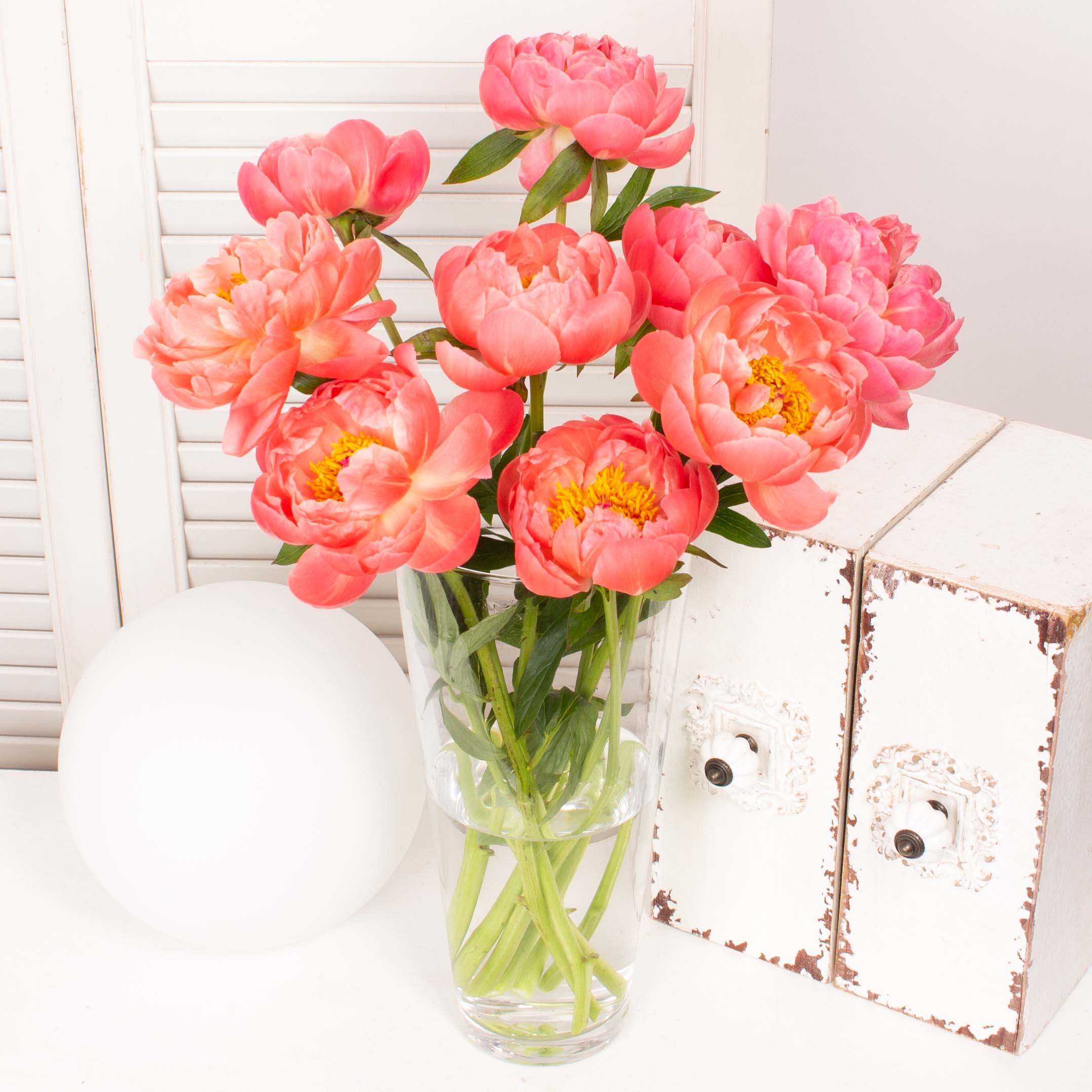 Vaza de sticla cu 9 bujori corai