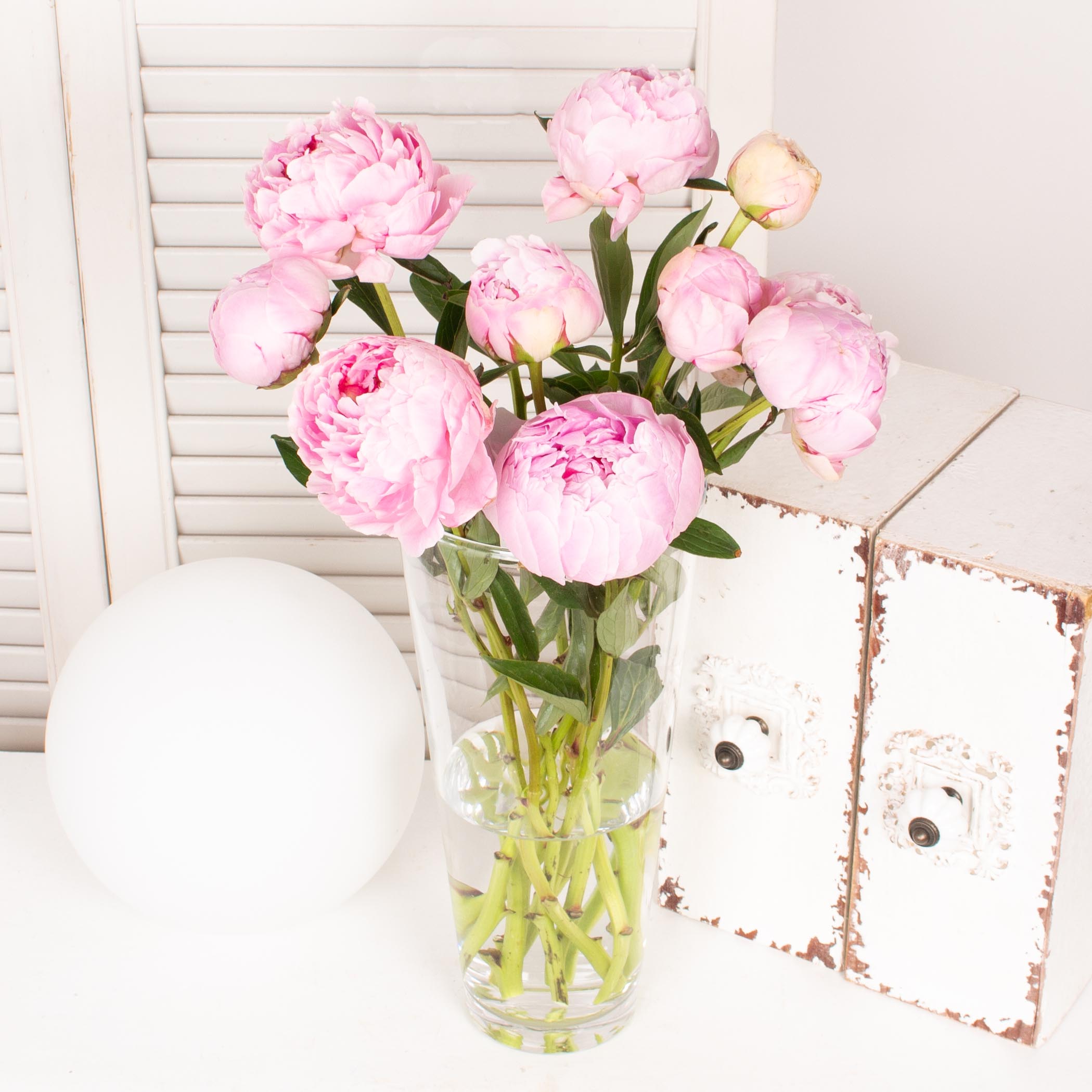 Vaza de sticla si 9 bujori roz