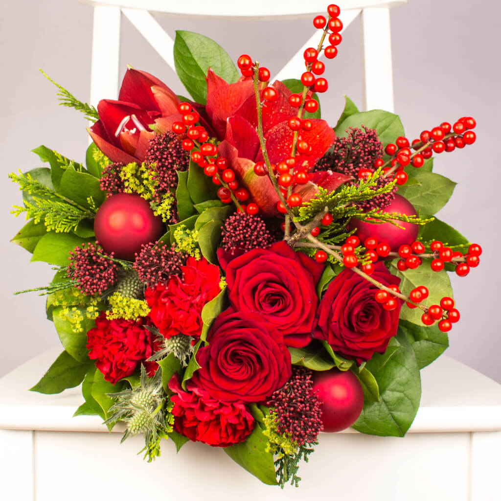 Florile daruite din suflet transmit emotii frumoase celor dragi. Mai ales buchetele de iarna. Combinatiile de flori rosii si albe sunt cele mai spectaculoase in acest sezon. Si pentru ca stim ca sunt momente pe care ati vrea sa le pastrati mereu in amintire, am creat acest buchet cu garoafe, amarylis si trandafiri pentru a sarbatori evenimentele fericite din viata voastra. Potrivit persoanelor mereu vesele si pline de viata, un astfel de cadou le va insenina cu siguranta ziua. Adauga un mesaj personalizat si transforma o zi banala intr-o amintire frumoasa!
