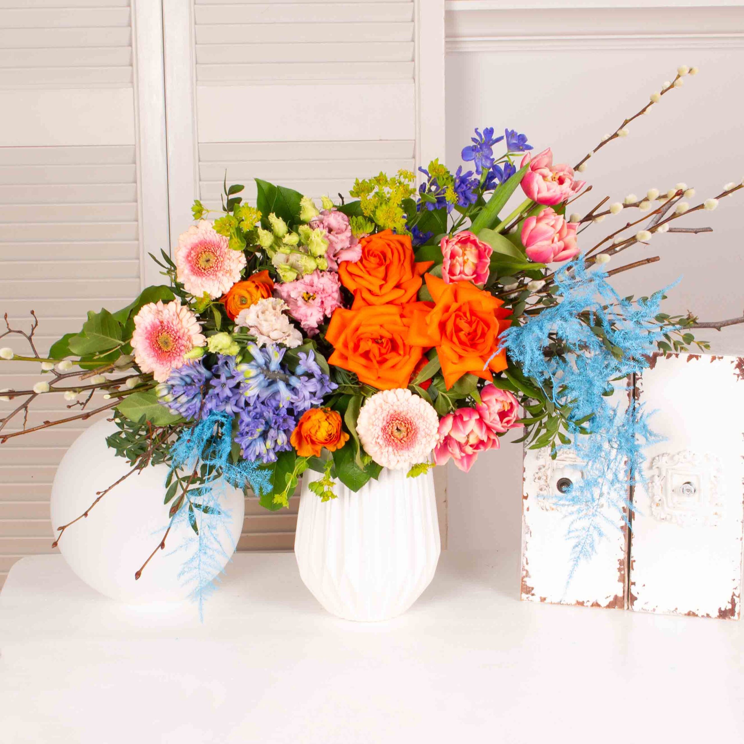 Livrarea aranjamentului de flori in Bucuresti (si in zone limitrofe) poate fi facuta in 2-6 ore, prin curierii proprii. Comenzile plasate pana in ora 18:00 pot fi livrate in aceeasi zi.