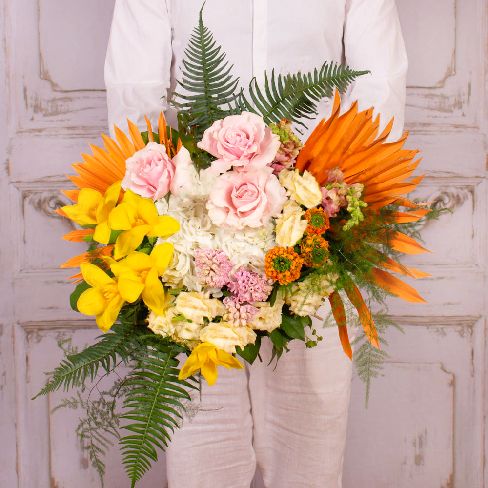 Pentru a va bucura cat mai mult de acest buchet de flori, inlocuiti apa din vaza si taiati aproximativ 1-2 cm din tulpinile florilor in fiecare zi. Buchetul va fi amplasat doar in interior ferit de razele directe ale soarelui si departe de aparatele de aer conditionat si calorifere. Temperatura recomandata pentru pastrarea florilor nu trebuie sa fie mai mare de 20 grade Celsius.