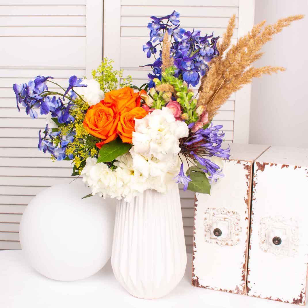 Pentru a va bucura cat mai mult de acest buchet de flori, inlocuiti apa din vaza si taiati aproximativ 1-2 cm din tulpinile florilor in fiecare zi. Buchetul va fi amplasat doar in interior ferit de razele directe ale soarelui si departe de aparatele de aer conditionat si calorifere. Temperatura recomandata pentru pastrarea florilor nu trebuie sa fie mai mare de 20 grade Celsius.