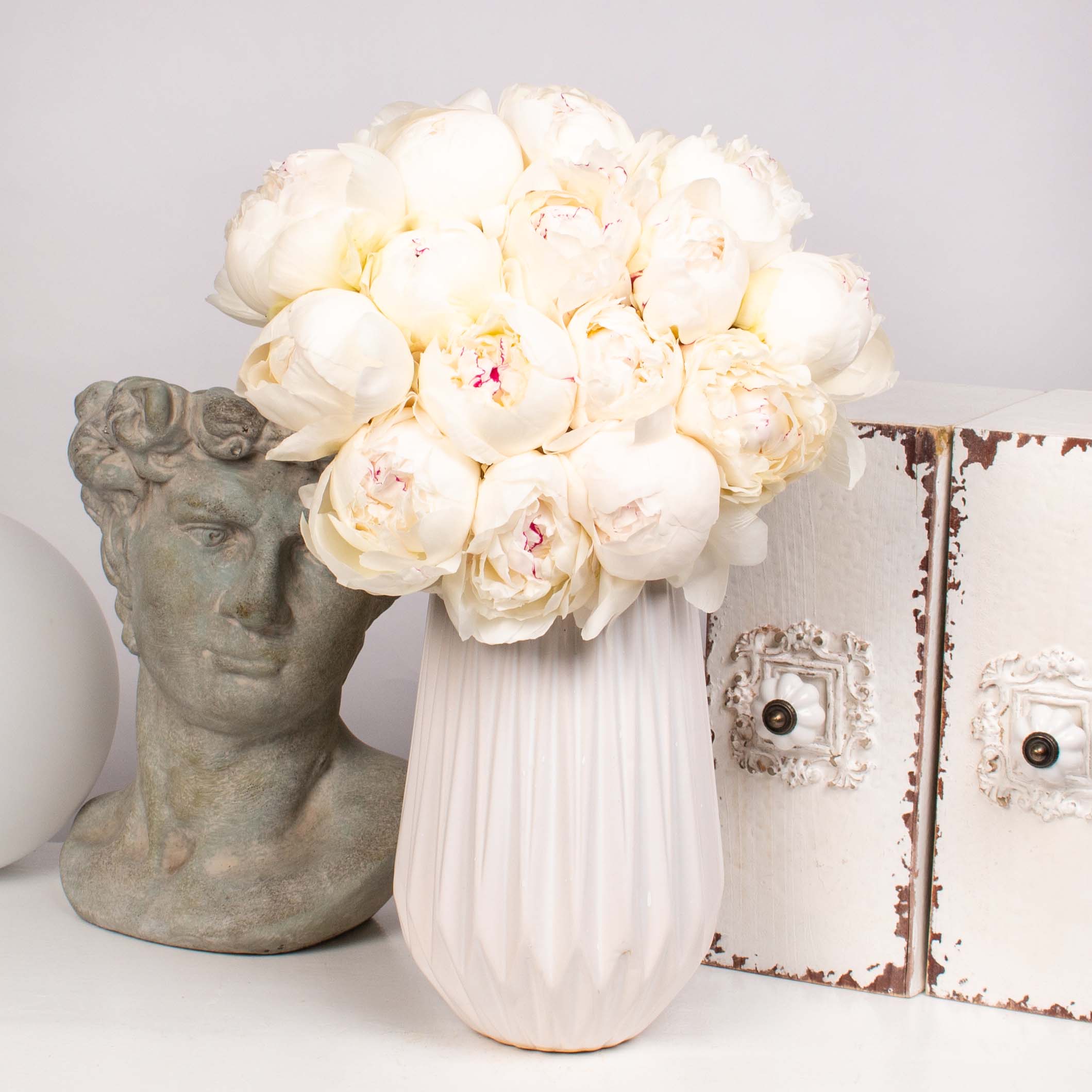 Florile aduc bucurie si iubire de fiecare data cand sunt daruite din suflet. Acest buchet cu 15 bujori albi comandat prin floraria online Purple Flowers este o surpriza deosebita si cu siguranta va schimba ziua persoanei care il va primi. Adauga un mesaj personalizat si fa o bucurie cuiva drag. Spune “Te iubesc!”, “La multi ani!”, “Felicitari!” cu un buchet de flori!