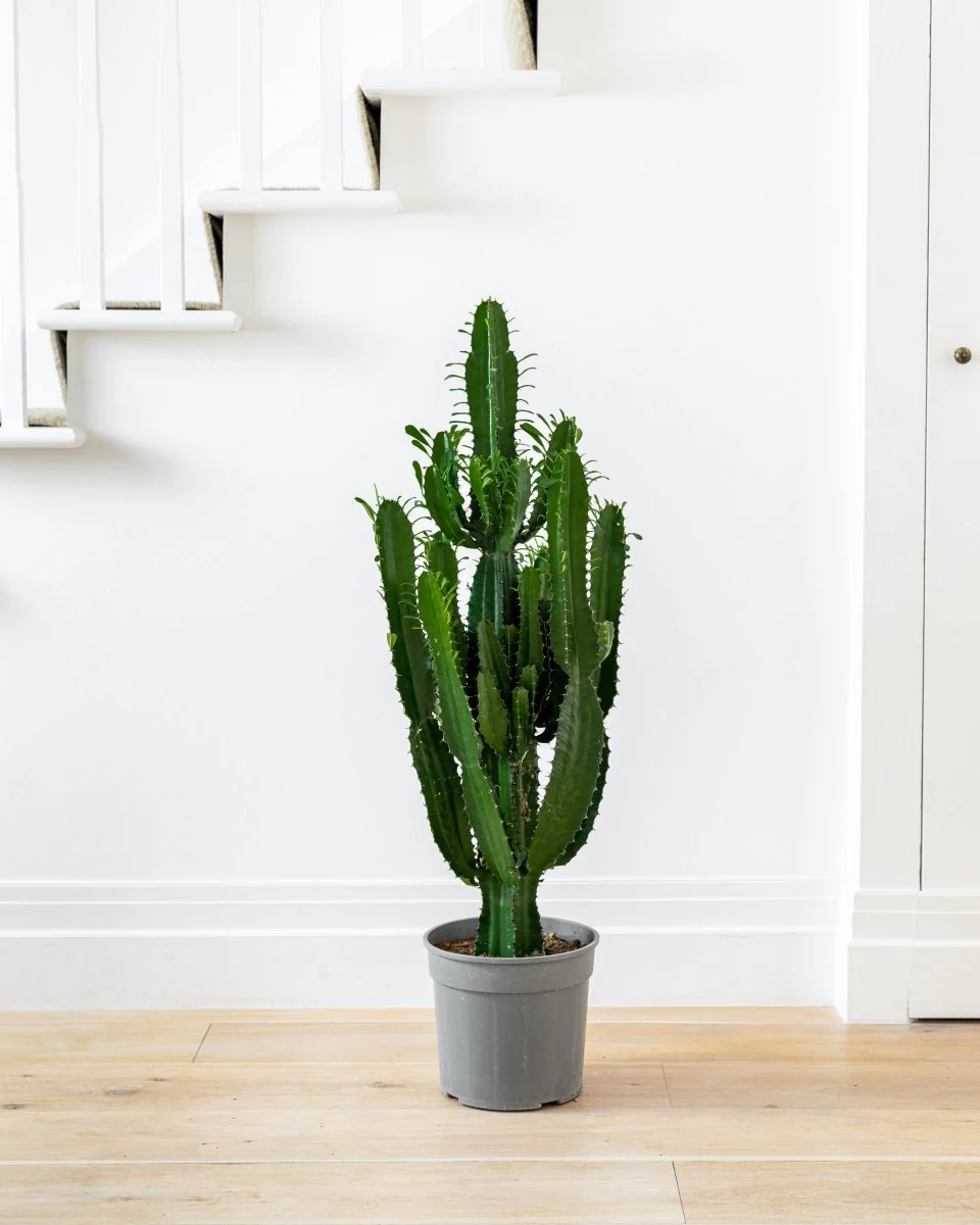 Euphorbia erytrea, cunoscută sub numele de “Candelabru”, este o plantă de interior remarcabilă, apreciată pentru structura sa verticală și frunzele suculente, care adaugă un accent exotic oricărei încăperi. Această plantă nativă din Africa de Est crește sub forma unui copăcel, cu ramuri groase, verzi și aspect de candelabru, ce pot atinge înălțimi impresionante chiar și în interior.