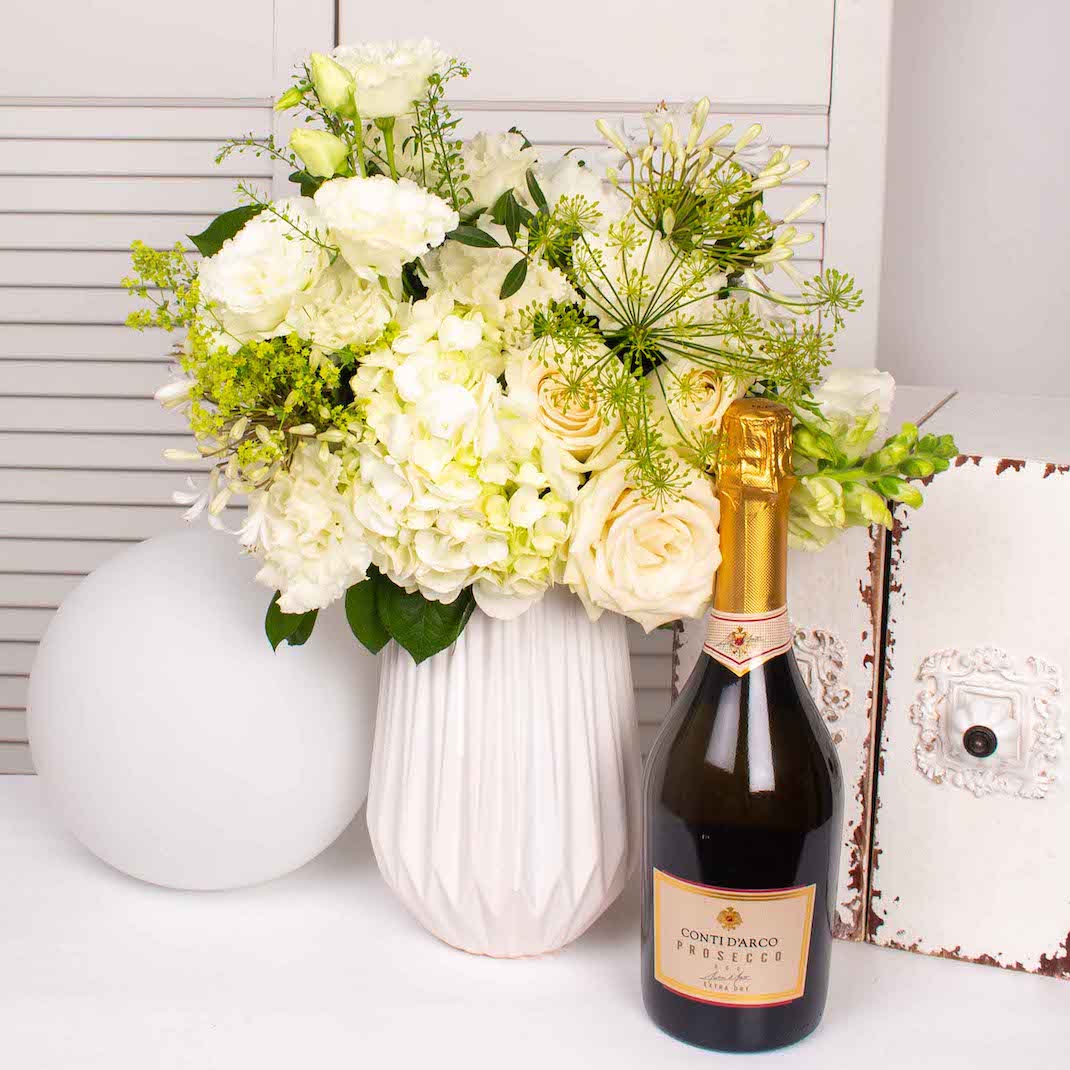 Cadou cu flori si prosecco
