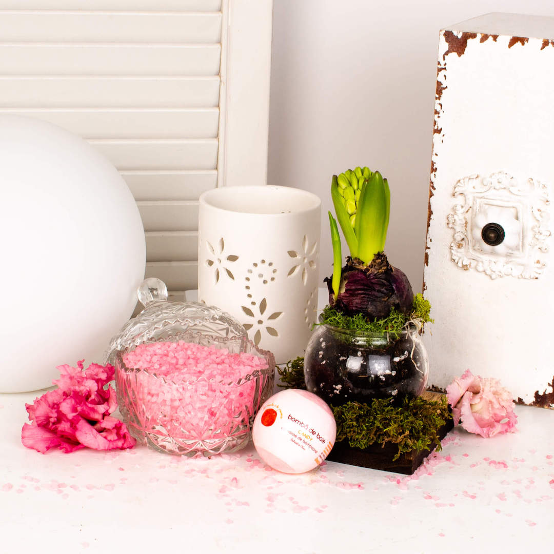 Cele mai speciale ocazii au nevoie de cadouri pe masura. Si nu puteam lasa sa treaca 1-8 Martie fara sa pregatim un cadou minunat pentru cele mai frumoase femei din viata noastra. Comanda acest cadou platou cu bulb de zambila, bol din sticla cu sare de baie, felinar portelan alb, lumanare pastila si bila de baie efervescenta.