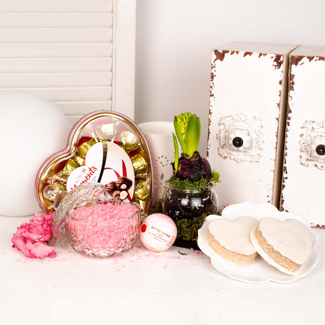 Acest cadou dedicat femeilor, contine tot ceea ce are nevoie o femeie pentru un moment de rasfat. Flori de primavara, lotiuni de corp cu aroma de cocos si vanilie, crema de maini Cherry Blossom, lipgloss si o oglinda pliabila, sare de baie, bomba efervescenta pentru baie, gel de dus Mango, lumanari parfumate Velvet Rose, felinar de portelan alb, praline de ciocolata Roshen cu alune de padure sau prajituri Adore cu ciocolata alba si cocos. Gandit special pentru femei, indiferent ca vrei sa il daruiesti mamei tale, iubitei, colegelor, sau altor femei pe care le cunosti, cu siguranta vor aprecia ca le-ai facut un cadou altfel.