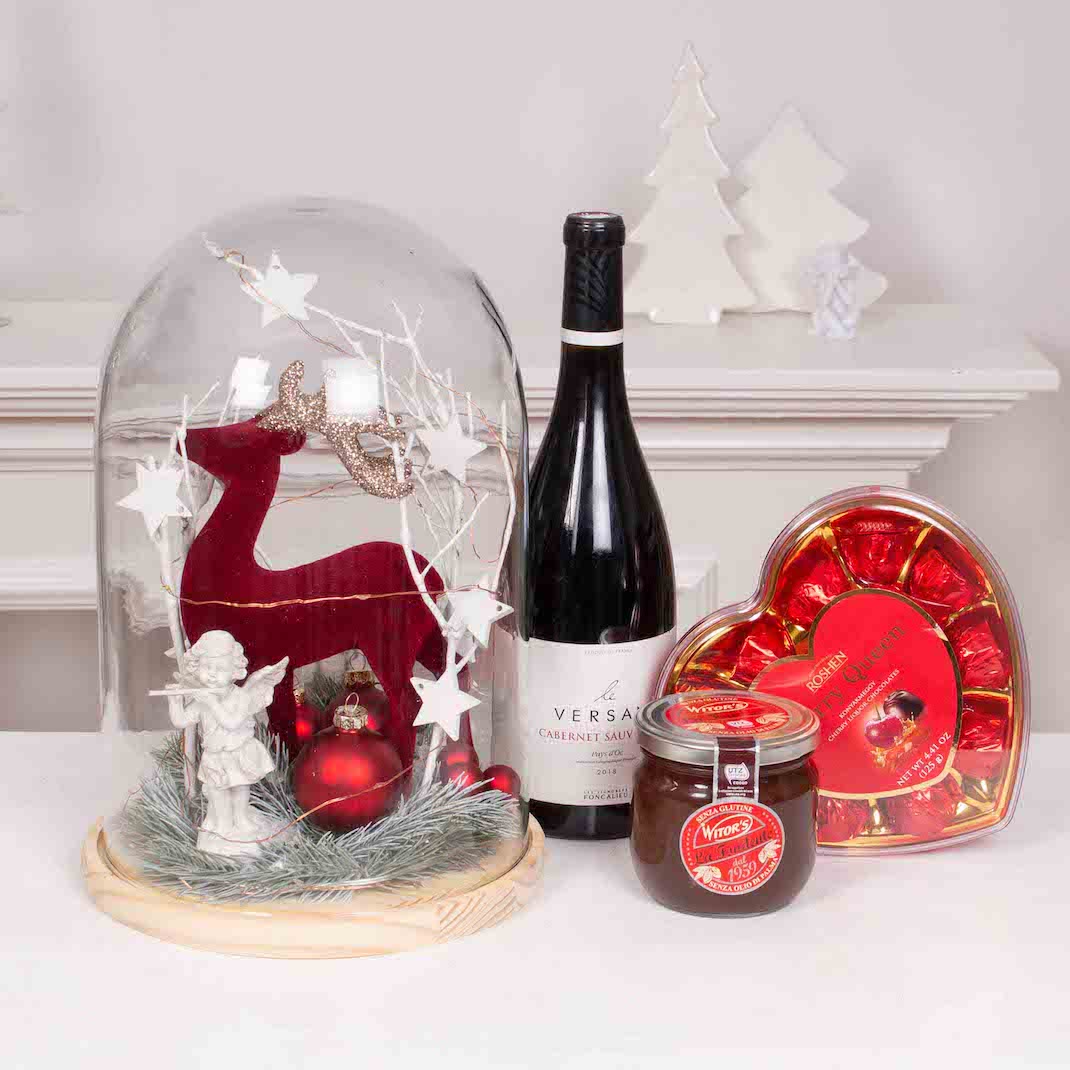 Cele mai speciale ocazii au nevoie de cadouri pe masura. Transforma o petrecere intr-o amintire frumoasa cu acest cos cadou cu Clopot de sticla cu ren rosu (inaltime 30 cm), vin rosu si ciocolata. Cel mai frumos moment este acela in care ne oferim cadouri, in care daruim zambete celor dragi.