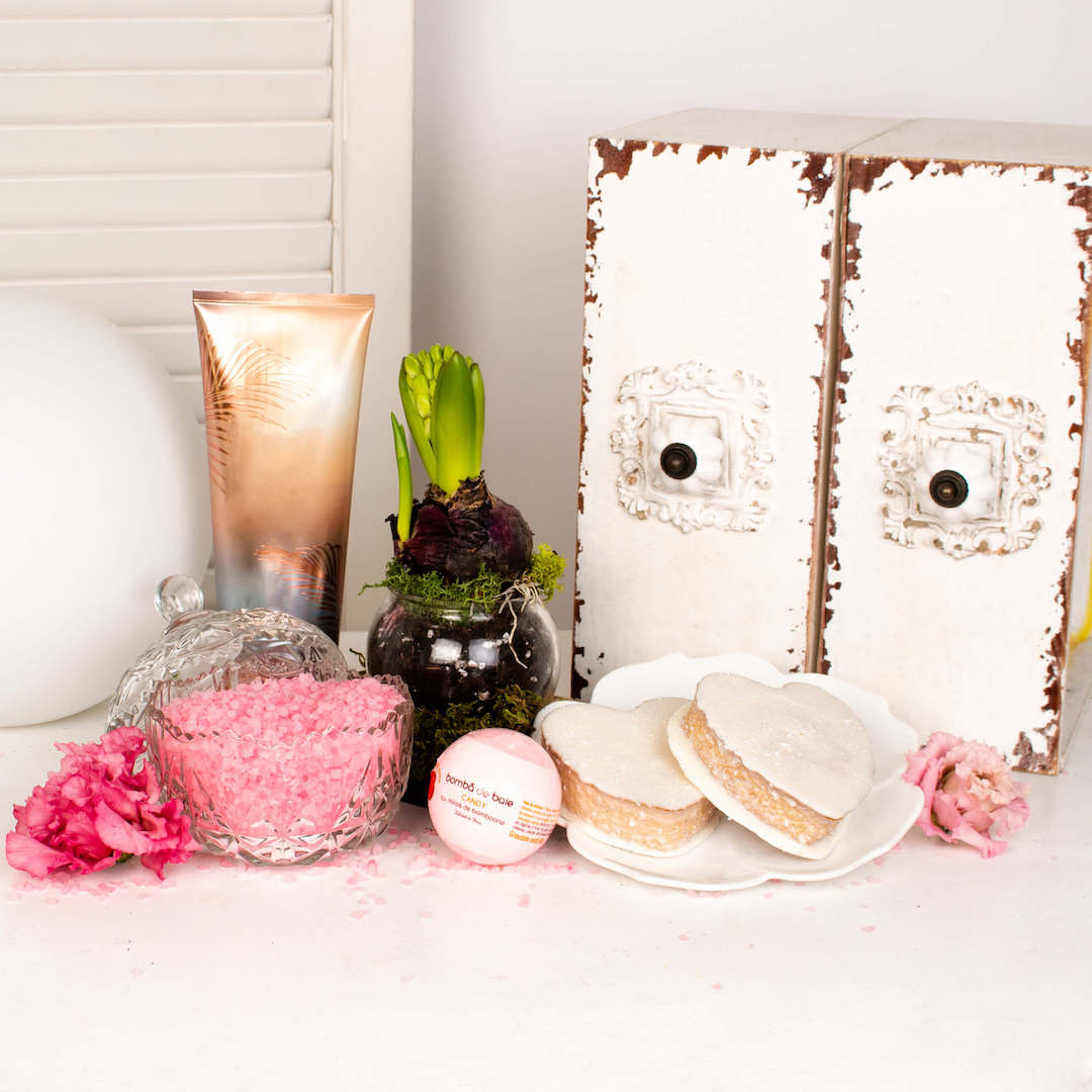 Acest cadou dedicat femeilor, contine tot ceea ce are nevoie o femeie pentru un moment de rasfat. Flori de primavara, lotiuni de corp cu aroma de cocos si vanilie, crema de maini Cherry Blossom, lipgloss si o oglinda pliabila, sare de baie, bomba efervescenta pentru baie, gel de dus Mango, lumanari parfumate Velvet Rose, felinar de portelan alb, praline de ciocolata Roshen cu alune de padure sau prajituri Adore cu ciocolata alba si cocos. Gandit special pentru femei, indiferent ca vrei sa il daruiesti mamei tale, iubitei, colegelor, sau altor femei pe care le cunosti, cu siguranta vor aprecia ca le-ai facut un cadou altfel.