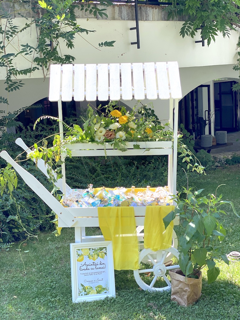 Acest carucior alb este un element de decor versatil, care poate fi utilizat ca lemonade bar sau ca element de decor la diverse evenimente in gradina, evenimente pe terasa, evenimente in aer liber. Caruciorul este ideal ca suport pentru a servi bauturi racoritoare, cocktailuri, limonada sau alte delicatese, oferind un mod atractiv si practic pentru a-i servi pe ceilalti.