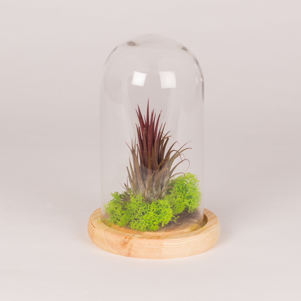 Terariu in clopot de sticla d12cm h20cm cu planta aerofita mica si muschi verde.