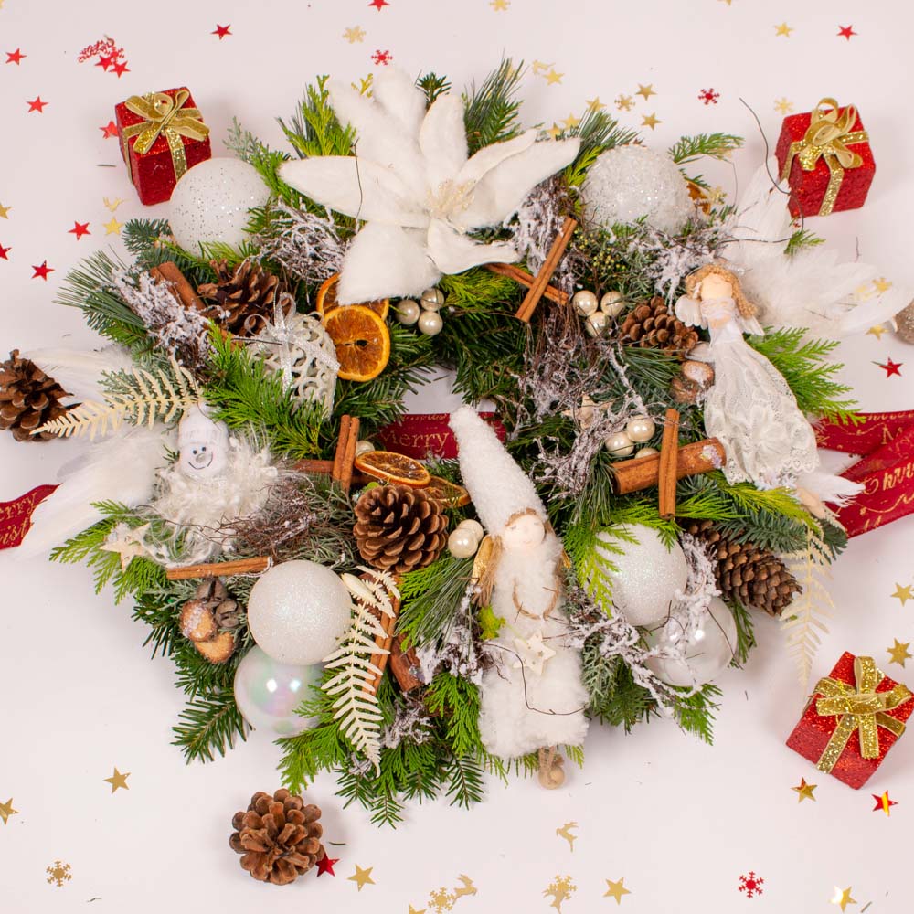Craciunul ne aduce aminte de copilarie. Cel mai frumos moment este acela in care ne oferim cadouri, acela in care daruim zambete celor dragi. Un aranjament de Craciun este cadoul perfect pentru a-i surprinde pe cei apropiati noua. Inspirati de frumusetea sarbatorilor de iarna am creat aceasta coronita cu figurine.