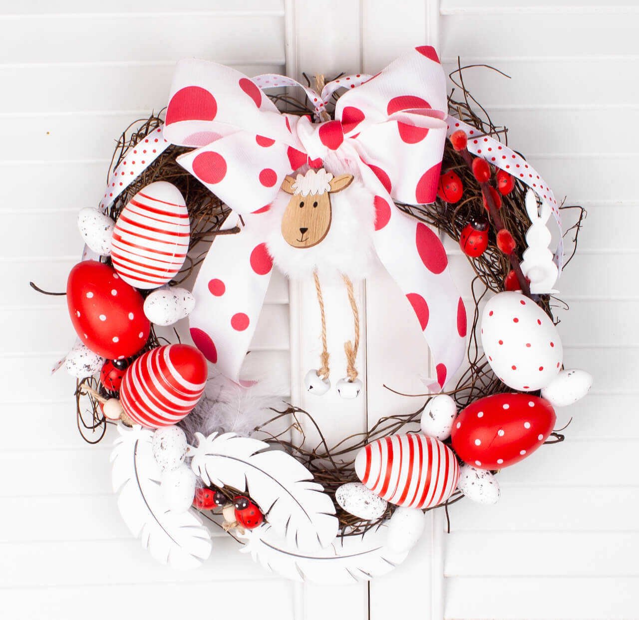 Sarbatorile sunt pentru noi si pentru cei mai apropiati sufletelor noastre. Aceasta coronita cu oua rosii precum si celelalte aranjamentele de Paste cu iepurasi, gainuse, oua, ciupercute si gargarite vor fi in centrul atentiei oriunde le vei aseza. V-am pregatit aranjamente cu oua rosii, aranjamente cu decoratiuni cosuri cu iepurasi si plantute, cosuri cu bunatati si cosuri pentru oua pentru sarbatoarea de Paste. Aceste aranjamente va vor bine dispune la birou in timp ce lucrati sau acasa in timp ce pregatiti cozonacii si vor decora frumos masa de Paste. Un aranjament de Paste este cel mai frumos cadou pentru prieteni si familie.