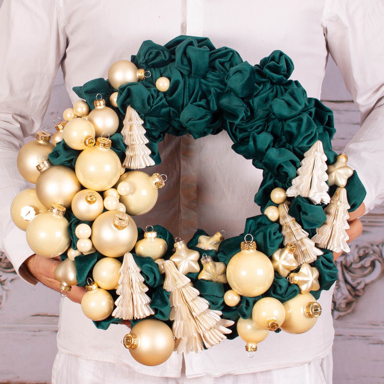 Craciunul ne aduce aminte de copilarie. Cel mai frumos moment este acela in care ne oferim cadouri, acela in care daruim zambete celor dragi. Un aranjament de Craciun este cadoul perfect pentru a-i surprinde pe cei apropiati noua. Inspirati de frumusetea sarbatorilor de iarna am creat aceasta coronita din catifea cu globuri de sticla si alte decoratiuni de Craciun.