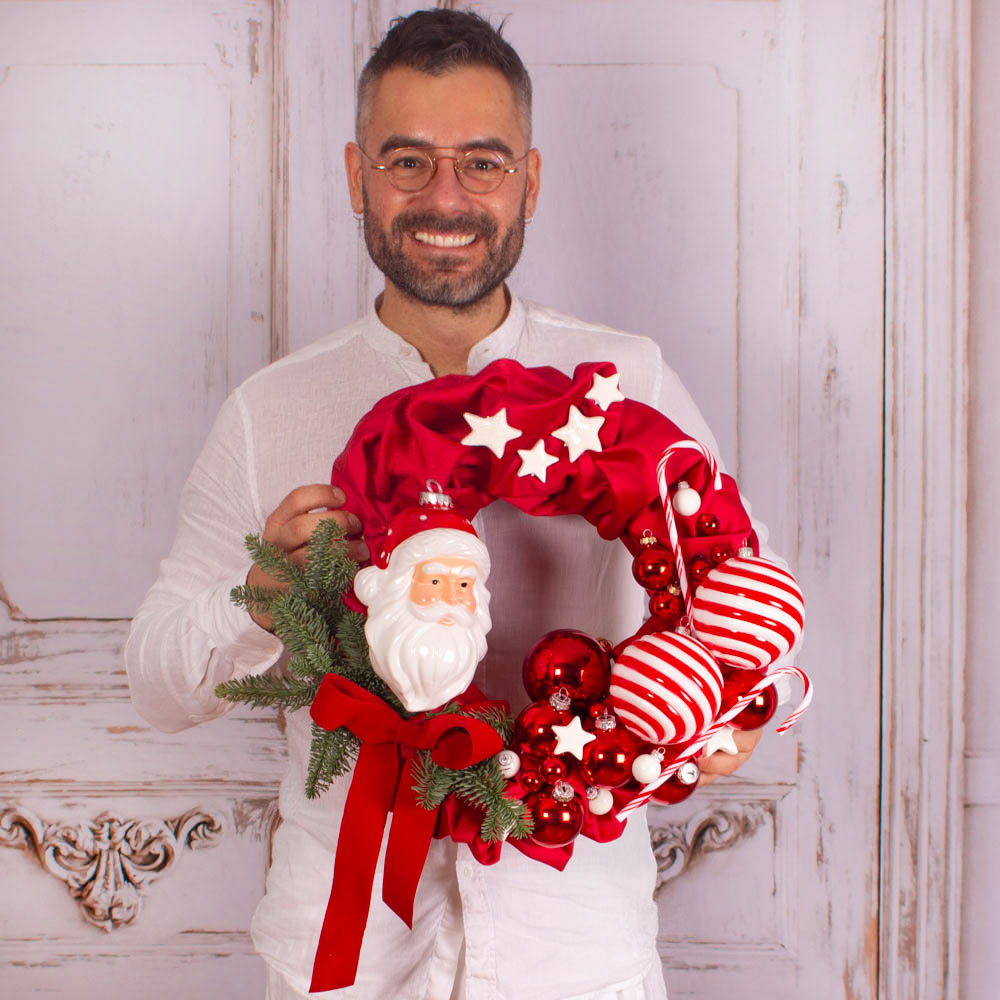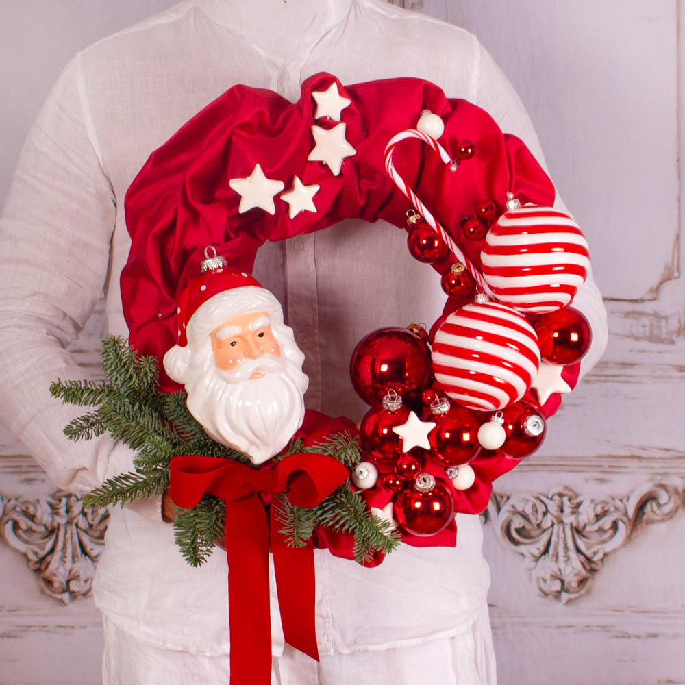Craciunul ne aduce aminte de copilarie. Cel mai frumos moment este acela in care ne oferim cadouri, acela in care daruim zambete celor dragi. Un aranjament de Craciun este cadoul perfect pentru a-i surprinde pe cei apropiati noua. Inspirati de frumusetea sarbatorilor de iarna am creat aceasta coronita din catifea rosie cu globuri de sticla si alte decoratiuni de Craciun.