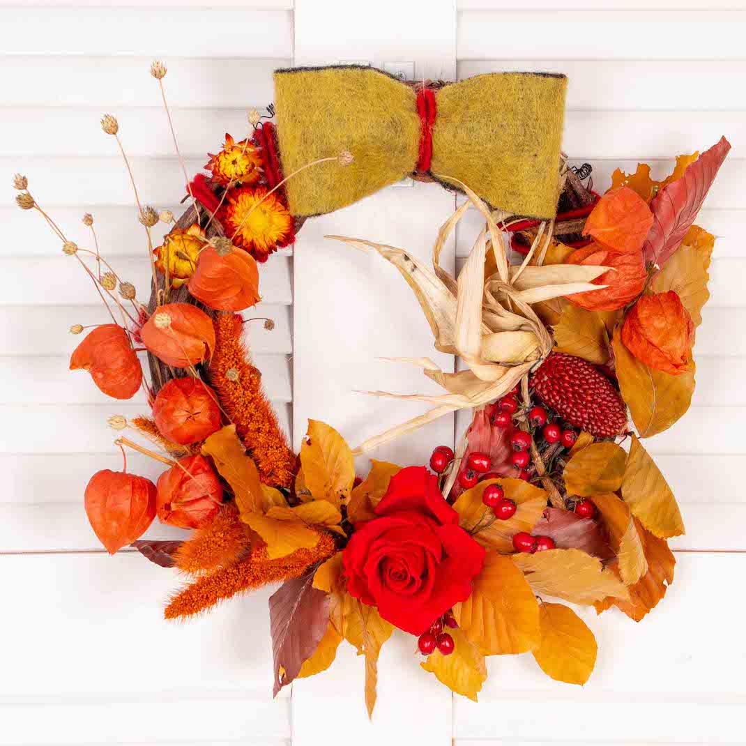 Florile daruite din suflet transmit emotii frumoase celor dragi. Mai ales aceasta coronita de toamna . Si pentru ca stim ca sunt momente pe care ati vrea sa le pastrati mereu in amintire, am realizat aceste coronite pentru a sarbatori evenimentele fericite din viata voastra. Potrivit persoanelor mereu vesele si pline de viata, un astfel de cadou le va insenina cu siguranta ziua. Adauga un mesaj personalizat si transforma o zi banala intr-o amintire frumoasa!