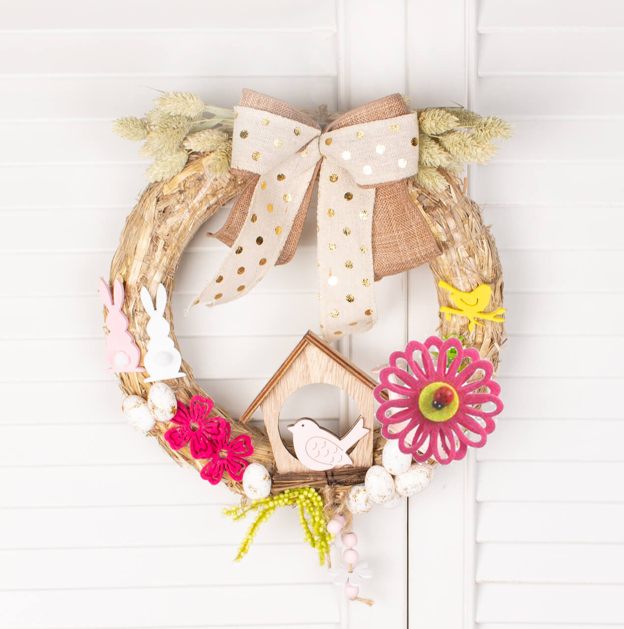 Sarbatorile sunt pentru noi si pentru cei mai apropiati sufletelor noastre. Aceasta coronita pentru Paste plina de voie buna precum si celelalte aranjamentele de Paste cu iepurasi, gainuse, oua, ciupercute si gargarite vor fi in centrul atentiei oriunde le vei aseza. V-am pregatit aranjamente cu oua rosii, aranjamente cu decoratiuni cosuri cu iepurasi si plantute, cosuri cu bunatati si cosuri pentru oua pentru sarbatoarea de Paste. Aceste aranjamente va vor bine dispune la birou in timp ce lucrati sau acasa in timp ce pregatiti cozonacii si vor decora frumos masa de Paste. Un aranjament de Paste este cel mai frumos cadou pentru prieteni si familie.