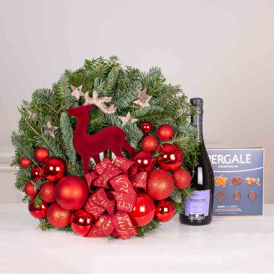 Cele mai speciale ocazii au nevoie de cadouri pe masura. Transforma o petrecere intr-o amintire frumoasa cu acest cos cadou cu Coronita de Craciun cu globuri rosii, Prosecco si praline de ciocolata. Cel mai frumos moment este acela in care ne oferim cadouri, in care daruim zambete celor dragi.