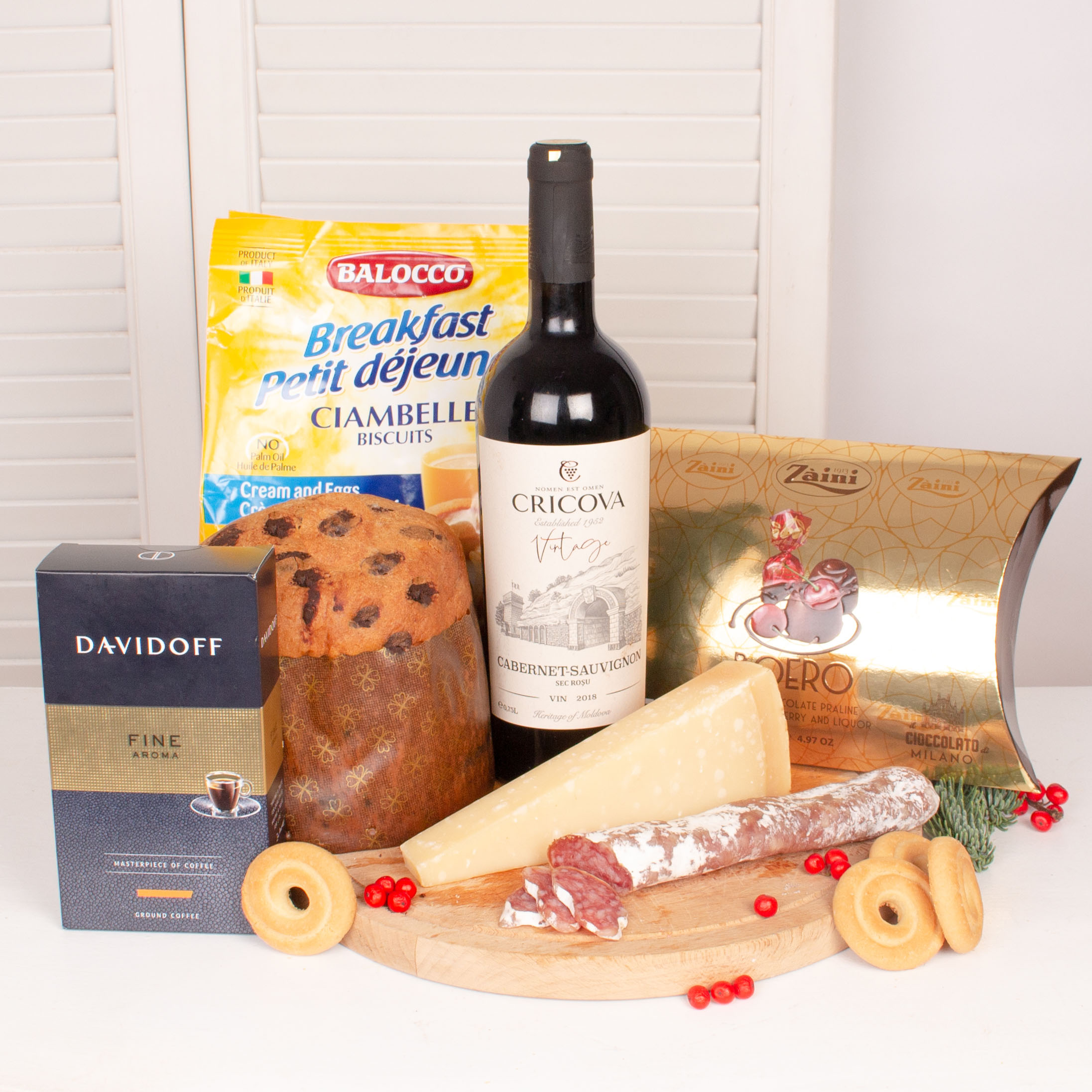 Cele mai speciale ocazii au nevoie de cadouri pe masura. Transforma o aniversare intr-o amintire frumoasa cu acest Cos cadou cu Vin Rosu, Parmigiano si Dulce. Cel mai frumos moment este acela in care ne oferim cadouri, in care daruim zambete celor dragi. Un cos cadou gourmet sau un cos cadou corporate este un fel simplu si frumos de a ne arata recunostinta, sau de a felicita pe cineva. Am ales produse de calitate, astfel incat apropiatii nostri, colegii sau partenerii de afaceri sa aiba parte de o surpriza frumoasa. Cozonac artizanal cu cacao si nuca sau mai bine, Cozonacul cu nuca insiropat cu vinars de la Braseria Zexe (bun de te lingi pe degete, la propriu!), Panetone cu ciocolata italienesc, Macarons si Chec artizanal cu ciocolata si portocale tot de la Braseria Zexe, paste delicioase si sosuri bine alese, Parmigiano Reggiano si Pecorino Romano de iti lasa gura apa, turta dulce, praline de ciocolata, fursecuri apetisante cu unt si bineinteles, nu puteam sa nu stropim totul cu vinuri rafinate (Tufoaie Soave Superiore Classico, Maison Castel Syrah Grande Reserve, Cabernet Suvignon Cricova Vintage Collection, Chardonnay Cricova Vintage Collection) dar si Prosecco si sampanie Moet. Pentru petrecareti, am strecurat si cateva cadouri cu London Dry Gin Tanqueray si apa tonica Sanpellegrino. Adauga un mesaj personalizat si noi plecam de indata sa facem ceea ce stim noi mai bine, adica sa livram emotii.