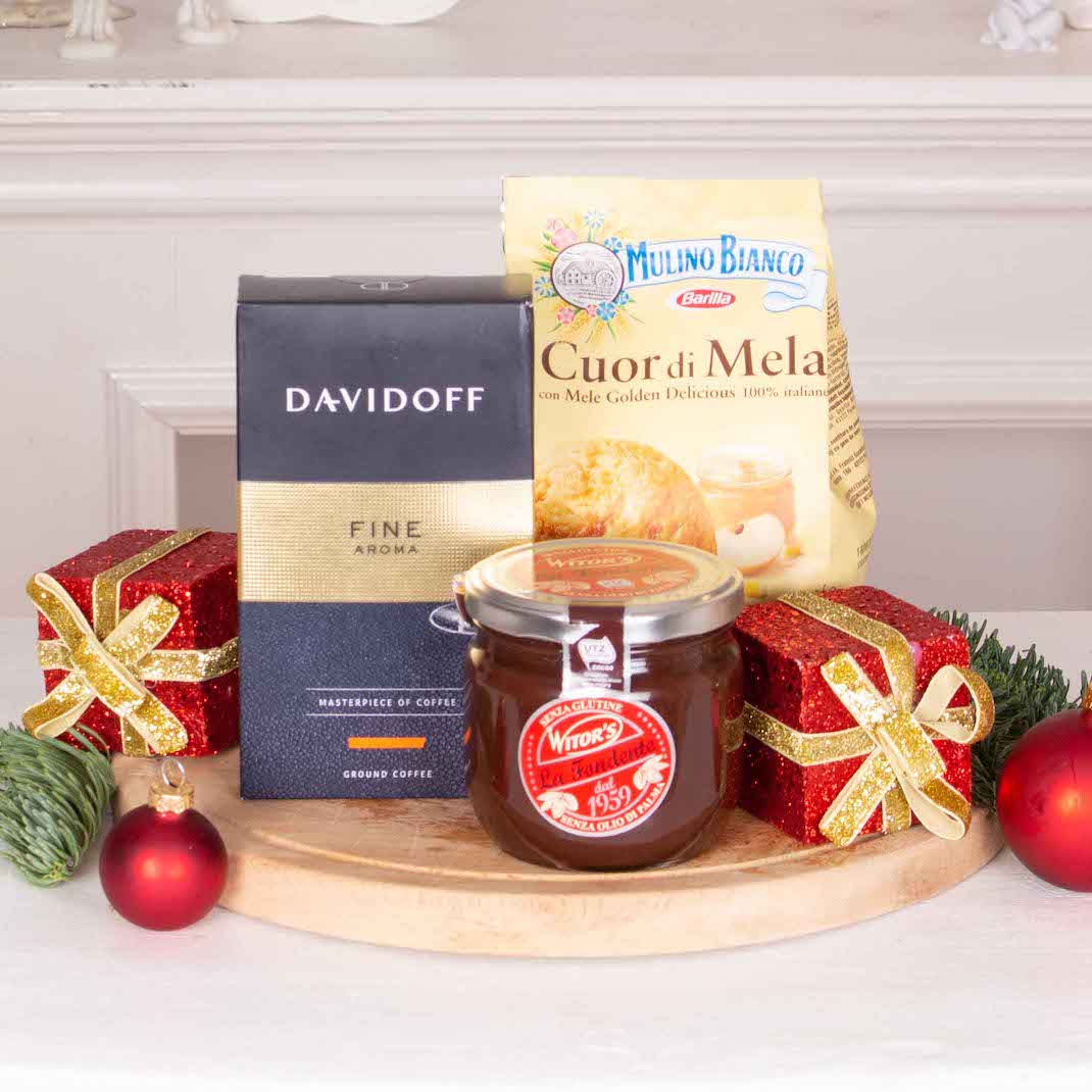 Cele mai speciale ocazii au nevoie de cadouri pe masura. Transforma o aniversare intr-o amintire frumoasa cu acest Cos cu Dulce si Cafea. Cel mai frumos moment este acela in care ne oferim cadouri, in care daruim zambete celor dragi. Un cos cadou gourmet sau un cos cadou corporate este un fel simplu si frumos de a ne arata recunostinta, sau de a felicita pe cineva. Am ales produse de calitate, astfel incat apropiatii nostri, colegii sau partenerii de afaceri sa aiba parte de o surpriza frumoasa. Cozonac artizanal cu cacao si nuca sau mai bine, Cozonacul cu nuca insiropat cu vinars de la Braseria Zexe (bun de te lingi pe degete, la propriu!), Panettone Gran Ducale cu stafide , Chec artizanal cu ciocolata si portocale tot de la Braseria Zexe, paste delicioase si sosuri bine alese, Parmigiano Reggiano , turta dulce, praline de ciocolata, fursecuri apetisante cu unt si bineinteles, nu puteam sa nu stropim totul cu vinuri rafinate (Le Versant Cabernet Sauvignon, Wine Crime Rose, Cabernet Sauvignon Cricova Vintage Collection, Chardonnay Cricova Vintage Collection) dar si cu Prosecco si sampanie Moet. Adauga un mesaj personalizat si noi plecam de indata sa facem ceea ce stim noi mai bine, adica sa livram emotii.