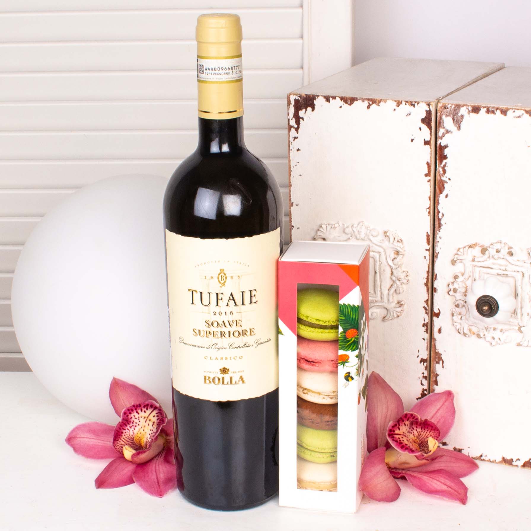 Cele mai speciale ocazii au nevoie de cadouri pe masura. Transforma o aniversare intr-o amintire frumoasa cu acest Cos Cadou cu cu macarons deliciosi si vin alb Tufaie Soave Superiore Classico. Cel mai frumos moment este acela in care ne oferim cadouri, in care daruim zambete celor dragi. Un cos cadou gourmet sau un cos cadou corporate este un fel simplu si frumos de a ne arata recunostinta, sau de a felicita pe cineva. Am ales produse de calitate, astfel incat apropiatii nostri, colegii sau partenerii de afaceri sa aiba parte de o surpriza frumoasa. Cozonac artizanal cu cacao si nuca sau mai bine, Cozonacul cu nuca insiropat cu vinars de la Braseria Zexe (bun de te lingi pe degete, la propriu!), Panetone cu ciocolata italienesc, Macarons si Chec artizanal cu ciocolata si portocale tot de la Braseria Zexe, paste delicioase si sosuri bine alese, Parmigiano Reggiano si Pecorino Romano de iti lasa gura apa, turta dulce, praline de ciocolata, fursecuri apetisante cu unt si bineinteles, nu puteam sa nu stropim totul cu vinuri rafinate (Tufoaie Soave Superiore Calssico, Maison Castel Syrah Grande Reserve, Cabernet Suvignon Cricova Vintage Collection, Chardonnay Cricova Vintage Collection) dar si Prosecco si sampanie Moet. Pentru petrecareti, am strecurat si cateva cadouri cu London Dry Gin Tanqueray si apa tonica Sanpellegrino. Adauga un mesaj personaliat si noi plecam de indata sa facem ceea ce stim noi mai bine, adica sa livram emotii.