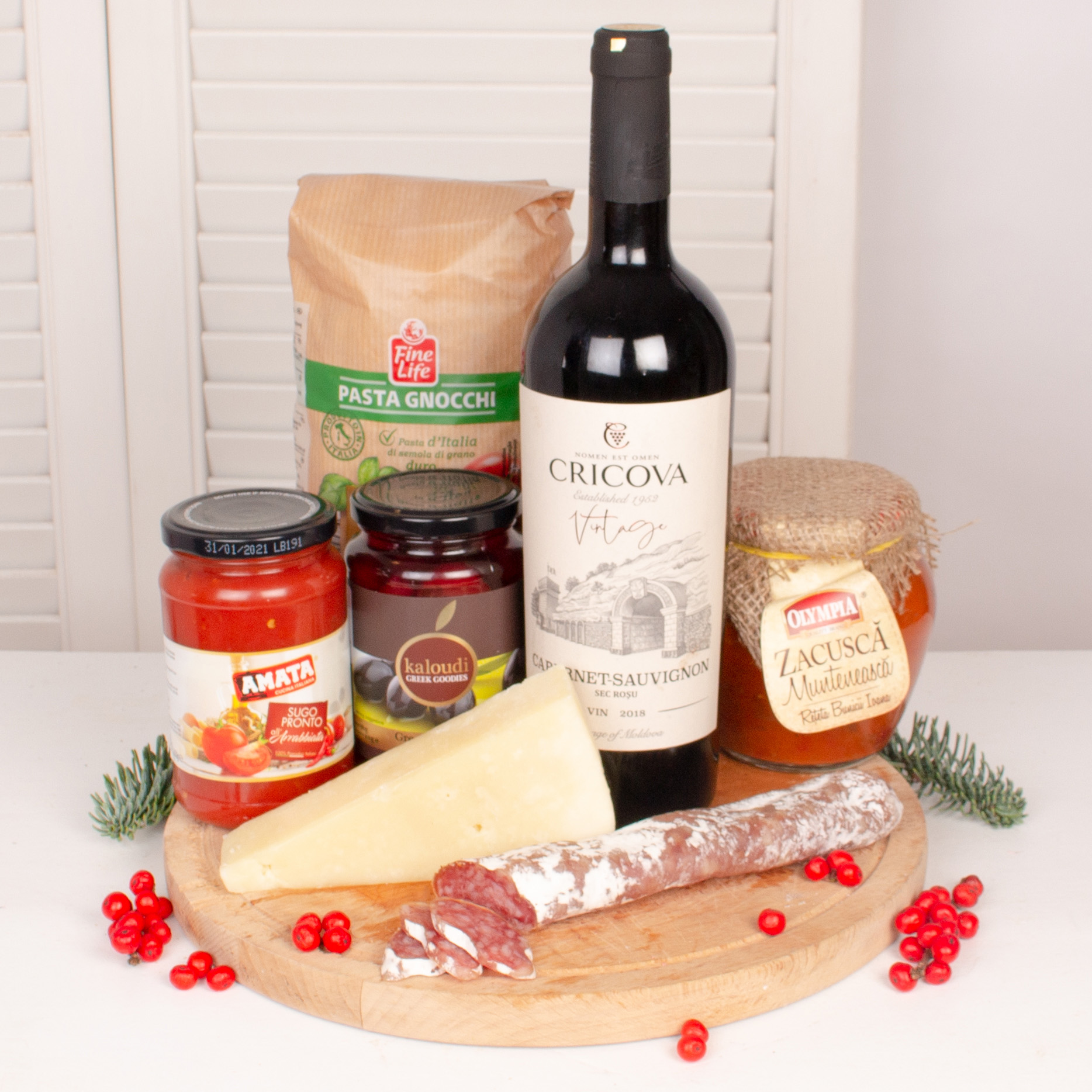 Cele mai speciale ocazii au nevoie de cadouri pe masura. Transforma o aniversare intr-o amintire frumoasa cu acest Cos cadou cu vin Cricova Cabernet Sauvignon rosu, paste Gnocchi Fine Life, zacusca munteneasca de vinete cu ardei capia copt si masline Kaloudi. Cel mai frumos moment este acela in care ne oferim cadouri, in care daruim zambete celor dragi. Un cos cadou gourmet sau un cos cadou corporate este un fel simplu si frumos fel de a ne arata recunostinta, sau de a felicita pe cineva. Am ales produse de calitate, astfel incat apropiatii nostri, colegii sau partenerii de afaceri sa aiba parte de o surpriza frumoasa. Cozonac artizanal cu cacao si nuca sau mai bine, Cozonacul cu nuca insiropat cu vinars de la Braseria Zexe (bun de te lingi pe degete, la propriu!), Panetone cu ciocolata italienesc, Macarons si Chec artizanal cu ciocolata si portocale tot de la Braseria Zexe, paste delicioase si sosuri bine alese, Parmigiano Reggiano si Pecorino Romano de iti lasa gura apa, turta dulce, praline de ciocolata, fursecuri apetisante cu unt si bineinteles, nu puteam sa nu stopim totul cu vinuri rafinate (Tufoaie Soave Superiore Calssico, Maison Castel Syrah Grande Reserve, Cabernet Suvignon Cricova Vintage Collection, Chardonnay Cricova Vintage Collection) dar si Prosecco si sampanie Moet. Pentru petrecareti, am strecurat si cateva cadouri cu London Dry Gin Tanqueray si apa tonica Sanpellegino. Adauga un mesaj personaliat si noi plecam de indata sa facem ceea ce stim noi mai bine, adica sa livram emotii.