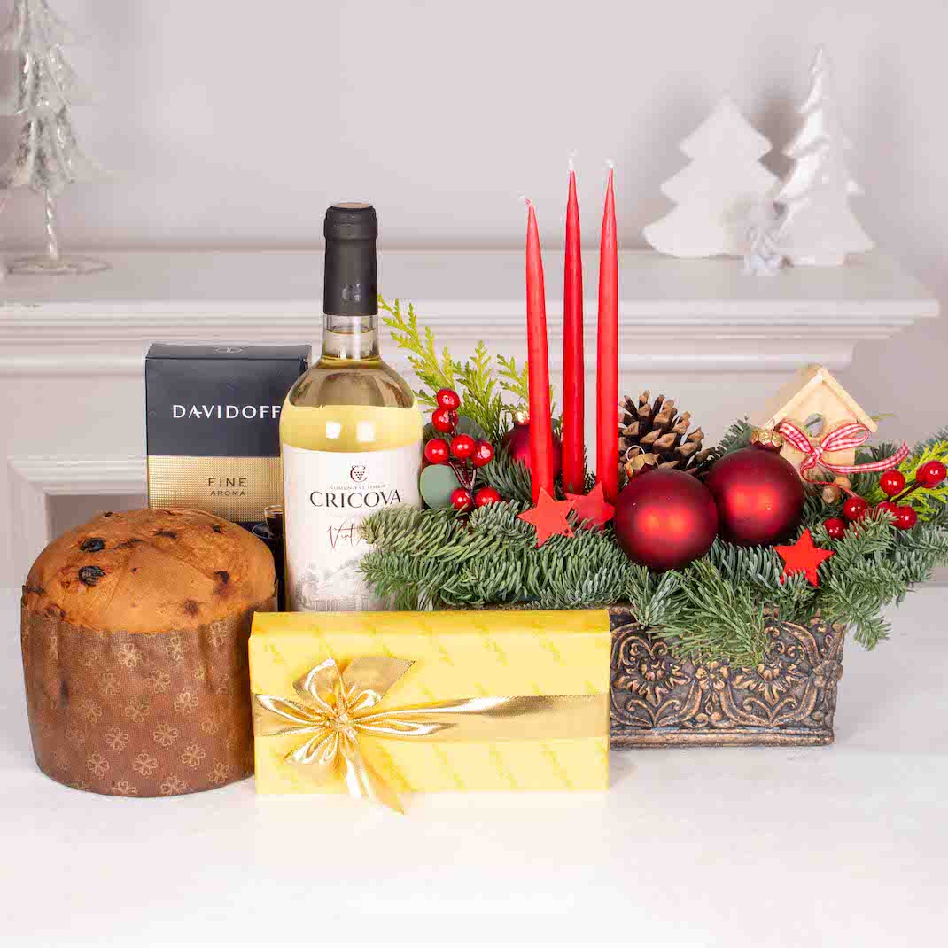 Cele mai speciale ocazii au nevoie de cadouri pe masura. Transforma o petrecere intr-o amintire frumoasa cu acest cos cadou cu Aranjament de Craciun cu lumanari, vin alb, cafea si panettone. Cel mai frumos moment este acela in care ne oferim cadouri, in care daruim zambete celor dragi.