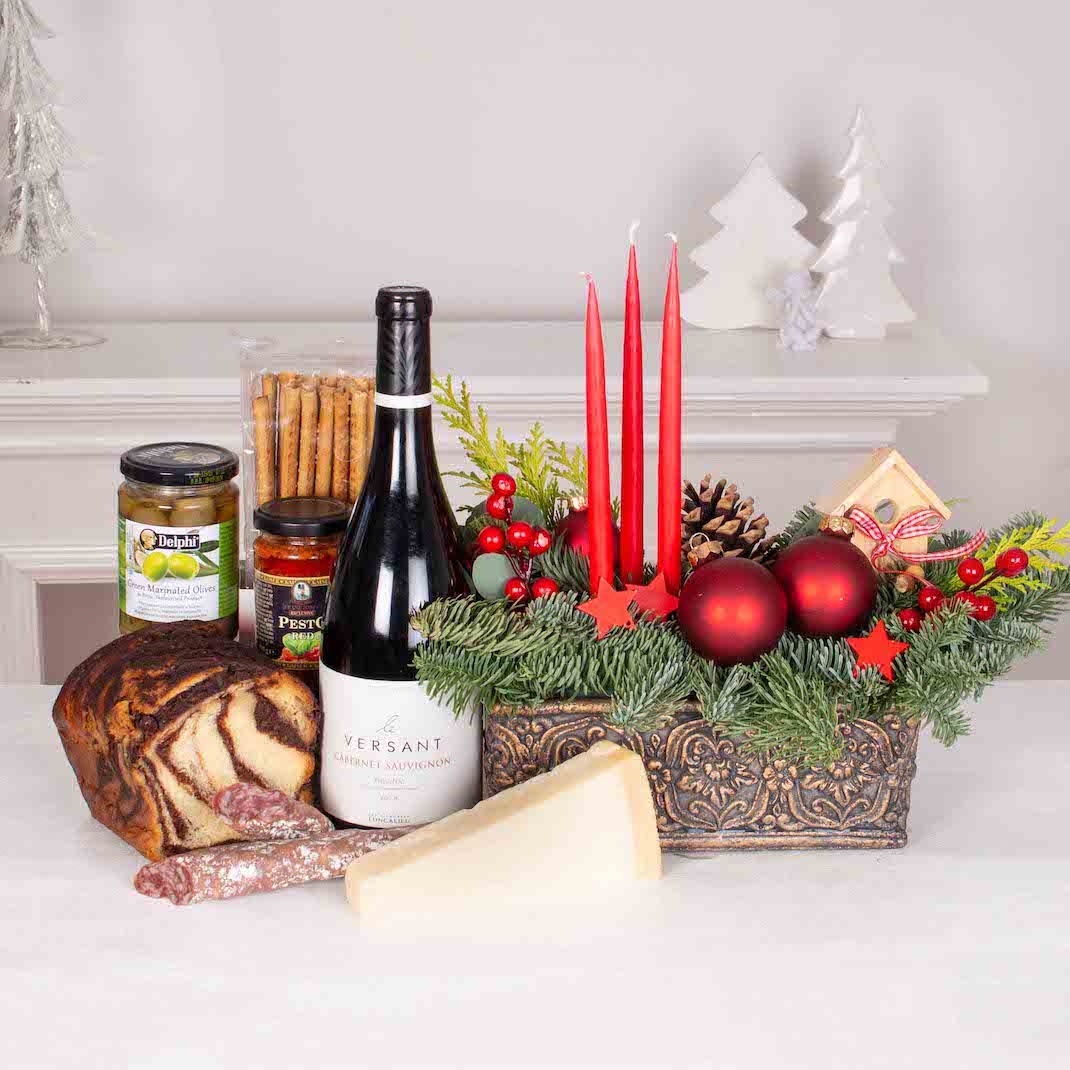Cele mai speciale ocazii au nevoie de cadouri pe masura. Transforma o petrecere intr-o amintire frumoasa cu acest cos cadou cu Aranjament de Craciun cu lumanari, vin rosu, sos pesto, specialitate crud-uscata, masline si cozonac. Cel mai frumos moment este acela in care ne oferim cadouri, in care daruim zambete celor dragi.