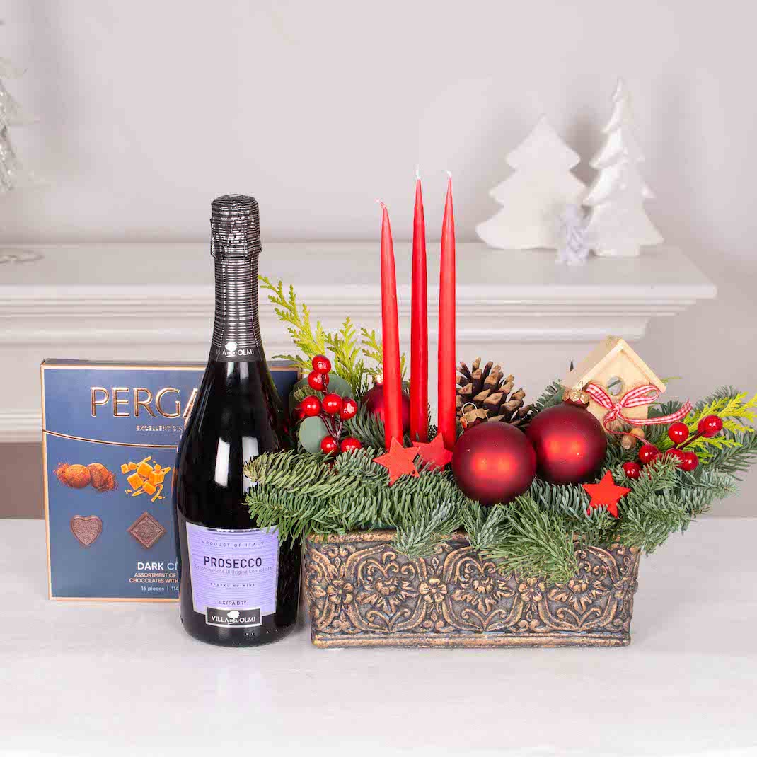 Cele mai speciale ocazii au nevoie de cadouri pe masura. Transforma o petrecere intr-o amintire frumoasa cu acest cos cadou cu Aranjament de Craciun cu lumanari, Prosecco si ciocolata. Cel mai frumos moment este acela in care ne oferim cadouri, in care daruim zambete celor dragi.