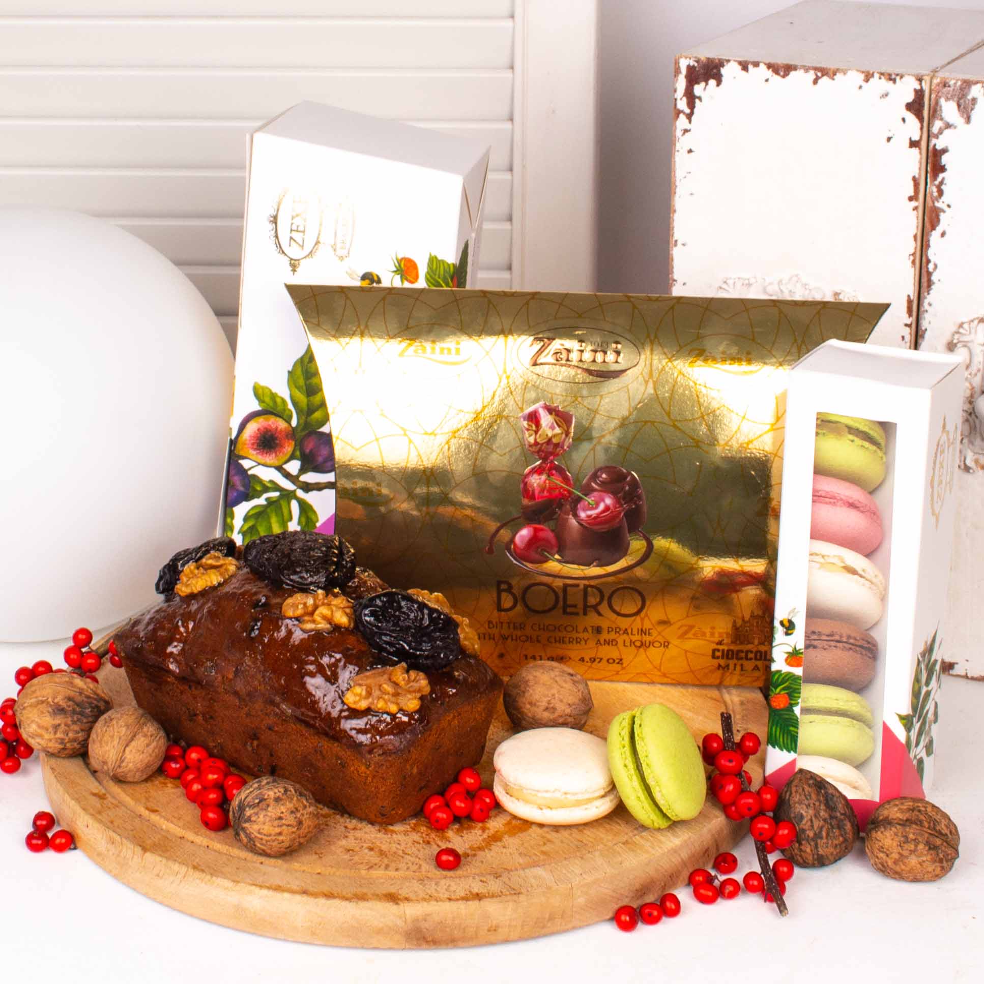 Cele mai speciale ocazii au nevoie de cadouri pe masura. Transforma o aniversare intr-o amintire frumoasa cu acest Cos cadou cu macarons, praline de ciocolata cu lichior de cirese si chec artizanal cu ciocolata si portocale de la Braseria Zexe. Cel mai frumos moment este acela in care ne oferim cadouri, in care daruim zambete celor dragi. Un cos cadou gourmet sau un cos cadou corporate este un fel simplu si frumos fel de a ne arata recunostinta, sau de a felicita pe cineva. Am ales produse de calitate, astfel incat apropiatii nostri, colegii sau partenerii de afaceri sa aiba parte de o surpriza frumoasa. Cozonac artizanal cu cacao si nuca sau mai bine, Cozonacul cu nuca insiropat cu vinars de la Braseria Zexe (bun de te lingi pe degete, la propriu!), Panetone cu ciocolata italienesc, Macarons si Chec artizanal cu ciocolata si portocale tot de la Braseria Zexe, paste delicioase si sosuri bine alese, Parmigiano Reggiano si Pecorino Romano de iti lasa gura apa, turta dulce, praline de ciocolata, fursecuri apetisante cu unt si bineinteles, nu puteam sa nu stopim totul cu vinuri rafinate (Tufoaie Soave Superiore Calssico, Maison Castel Syrah Grande Reserve, Cabernet Suvignon Cricova Vintage Collection, Chardonnay Cricova Vintage Collection) dar si Prosecco si sampanie Moet. Pentru petrecareti, am strecurat si cateva cadouri cu London Dry Gin Tanqueray si apa tonica Sanpellegino. Adauga un mesaj personaliat si noi plecam de indata sa facem ceea ce stim noi mai bine, adica sa livram emotii.