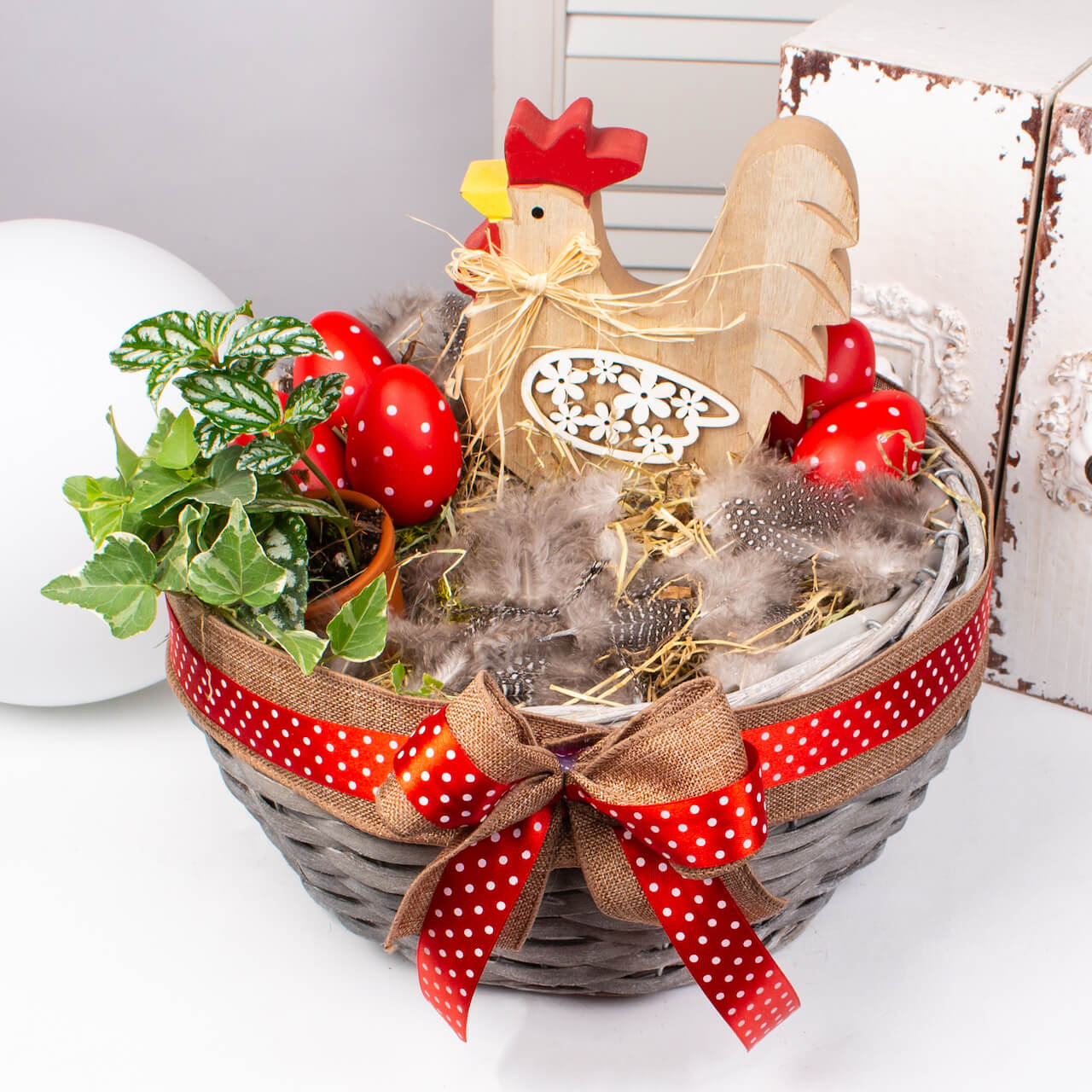 V-am pregatit aranjamente cu oua rosii, aranjamente cu decoratiuni cosuri cu iepurasi si plantute, cosuri cu bunatati si cosuri pentru oua pentru sarbatoarea de Paste. Aceste aranjamente va vor bine dispune la birou in timp ce lucrati. Acasa in timp ce pregatiti cozonacii si vor decora frumos masa de Paste.