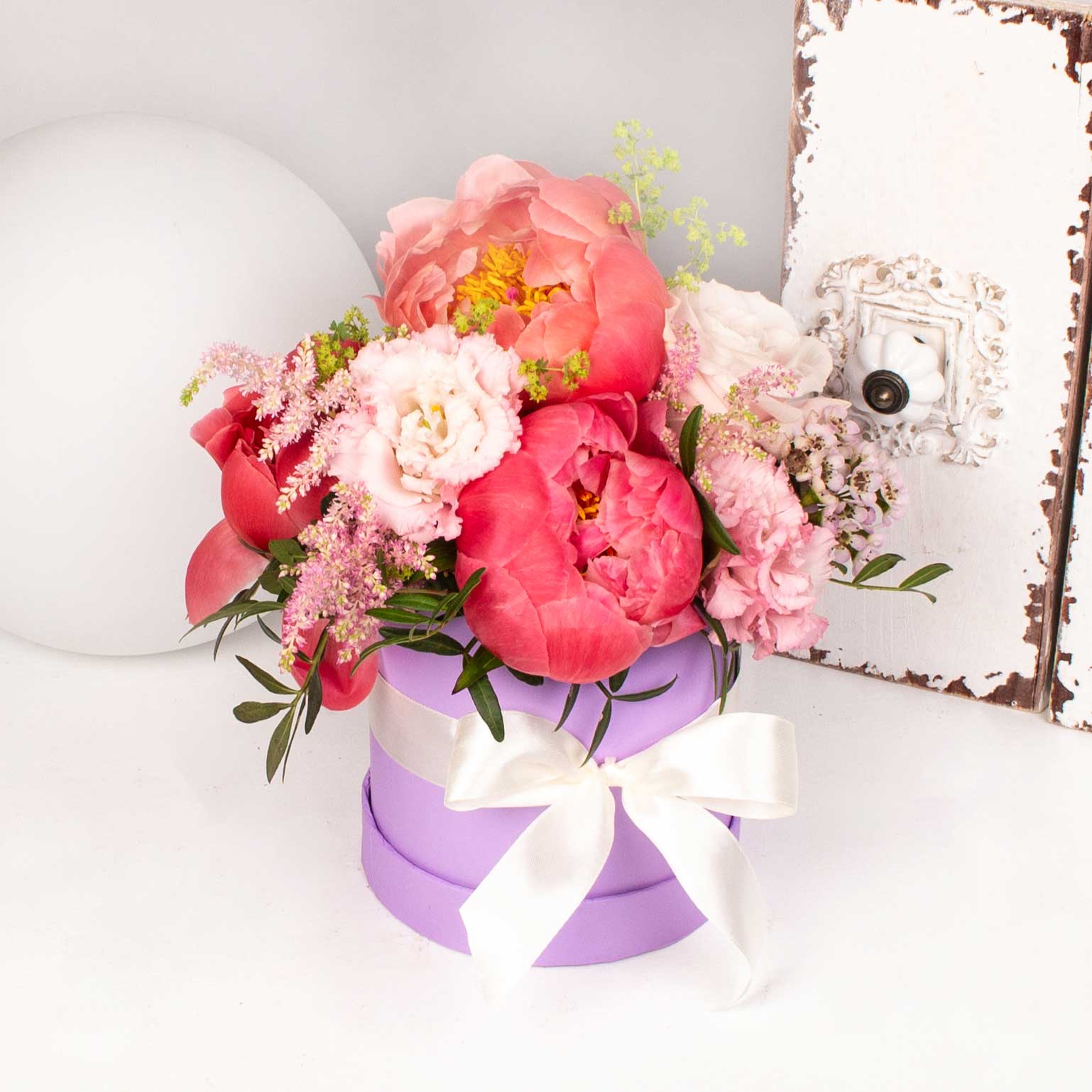 Exprima-ti sentimentele in flori si daruieste aceasta cutie cu bujori, lisianthus si alte flori persoanei dragi. Florile acestea vor insenina ziua sotiei, mamei, iubitei, colegei sau sefei tale! Adauga mesajul tau personalizat iar noi pornim de indata sa o surprindem cu acest aranjament deosebit.