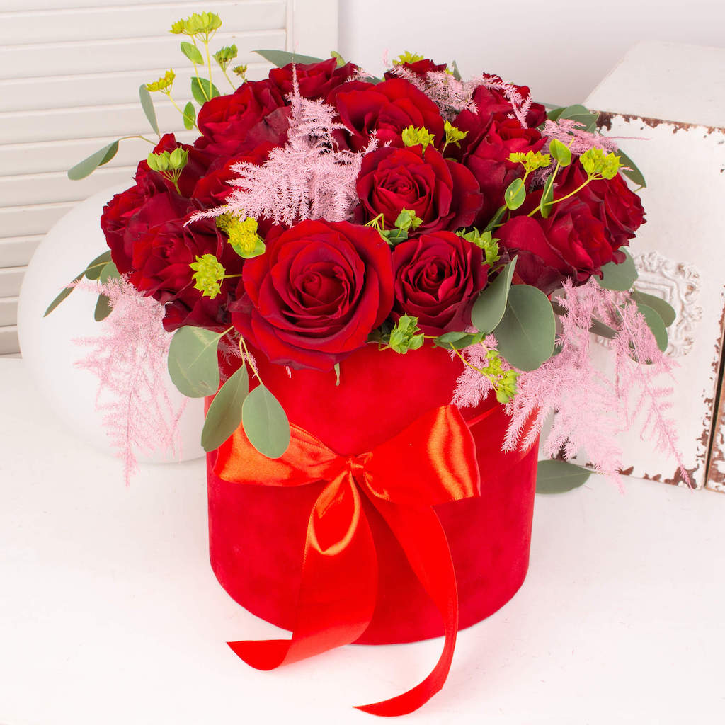 Exprima-ti sentimentele in flori si daruieste aceasta cutie cu 19 trandafiri rosii persoanei dragi. Florile acestea vor insenina ziua sotiei, mamei, iubitei, colegei sau sefei tale! Adauga mesajul tau personalizat iar noi pornim de indata sa o surprindem cu acest aranjament deosebit.