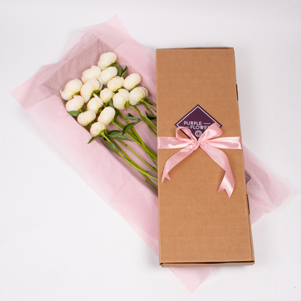 Express your feelings in flowers and offer this box with 15 white peonies to your loved one. These flowers will brighten the day of your wife, mother, girlfriend, colleague or boss! Add your personalised message and we’ll start surprising her right away with this special arrangement.