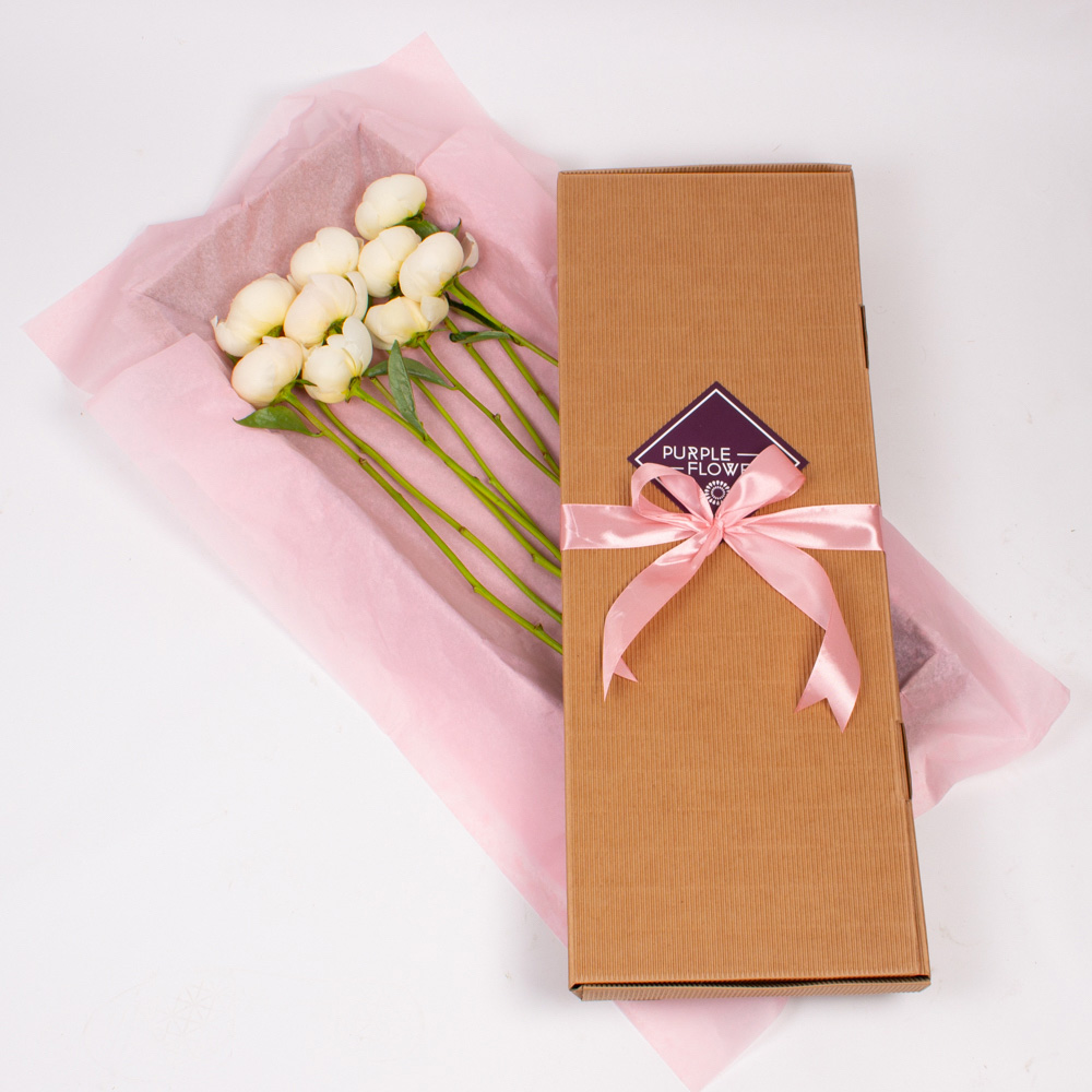 Express your feelings in flowers and offer this box with 9 white peonies to your loved one. These flowers will brighten the day of your wife, mother, girlfriend, colleague or boss! Add your personalised message and we’ll start surprising her right away with this special arrangement.