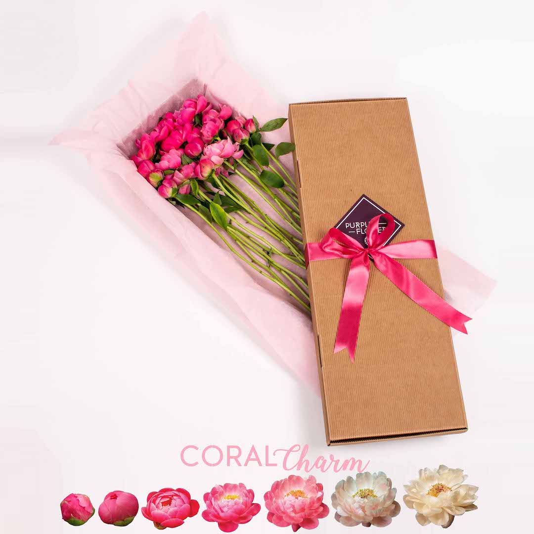 Express your feelings in flowers and offer this box with 19 coral peonies to your loved one. These flowers will brighten the day of your wife, mother, girlfriend, colleague or boss! Add your personalised message and we’ll start surprising her right away with this special arrangement.