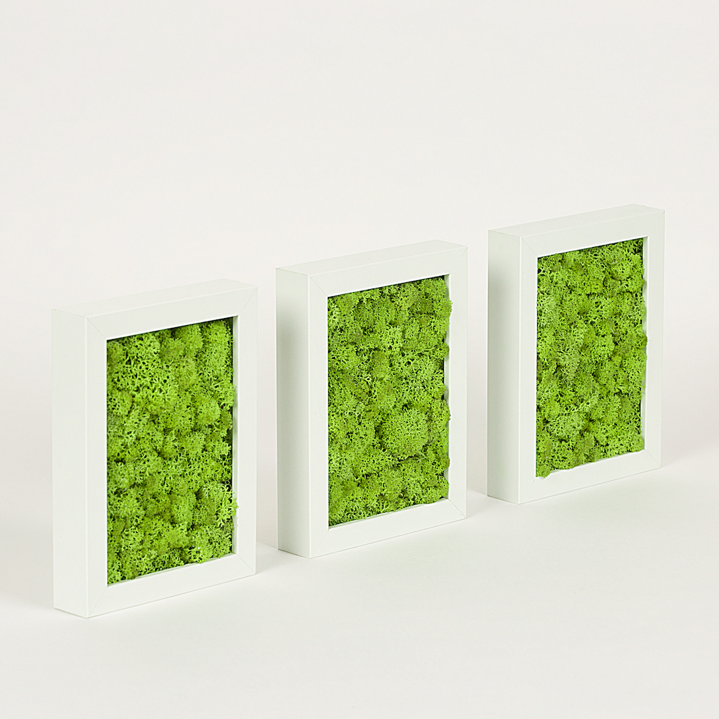 · Natural green moss, preserved moss and preserved plants do not need water. In case of accidental water contact, they will be gently tapped with a dry paper towel and will be let to dry. The prolonged contact with water leads to moss decay, plant alteration and decolouring.
